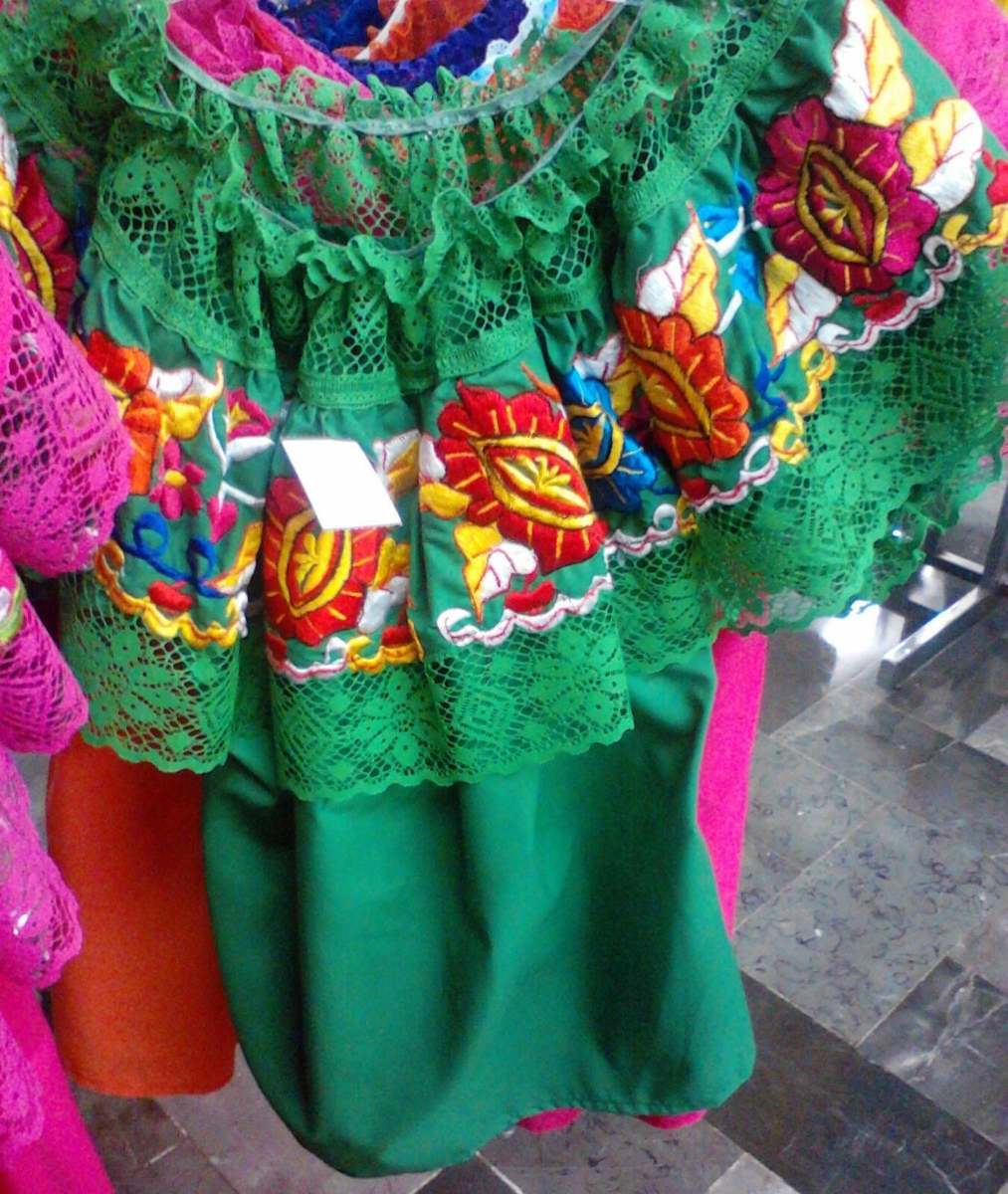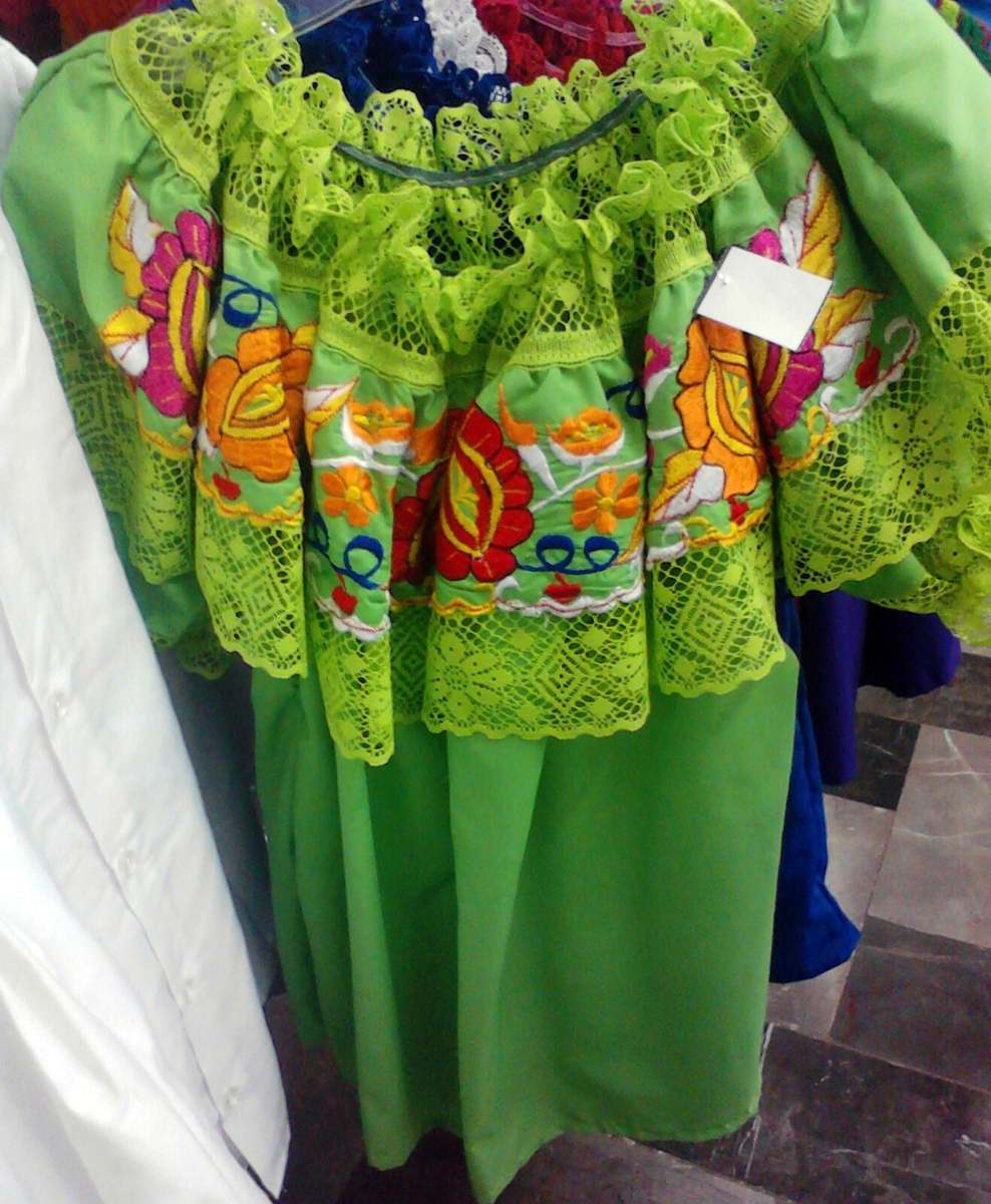 Womens Off-Shoulder Ruffle Top W/Floral Embroidery Folklorico Dance Handmade