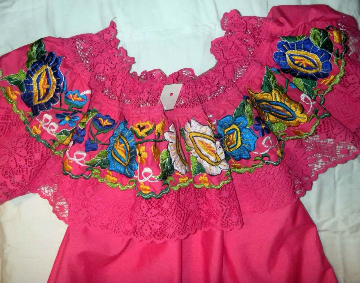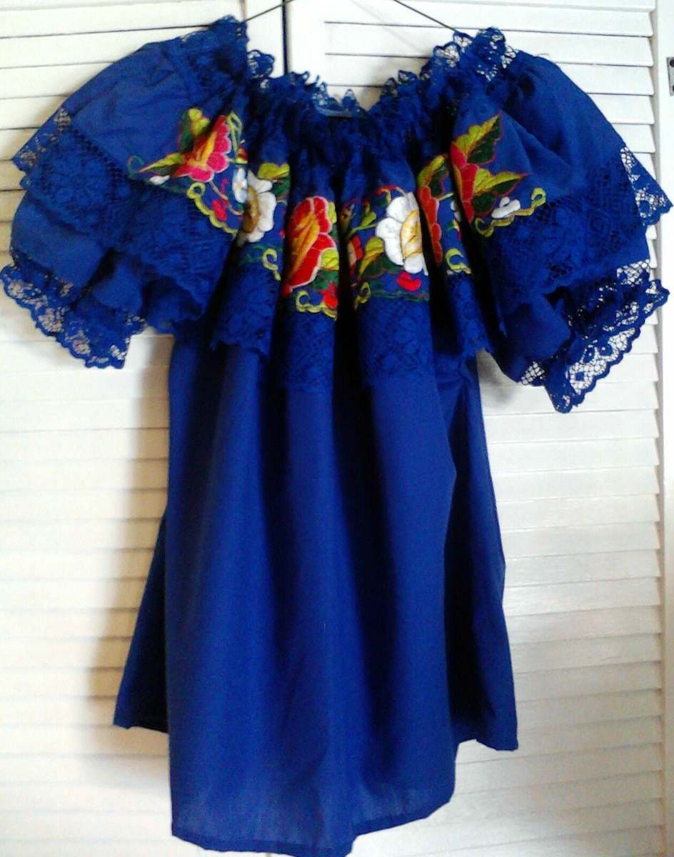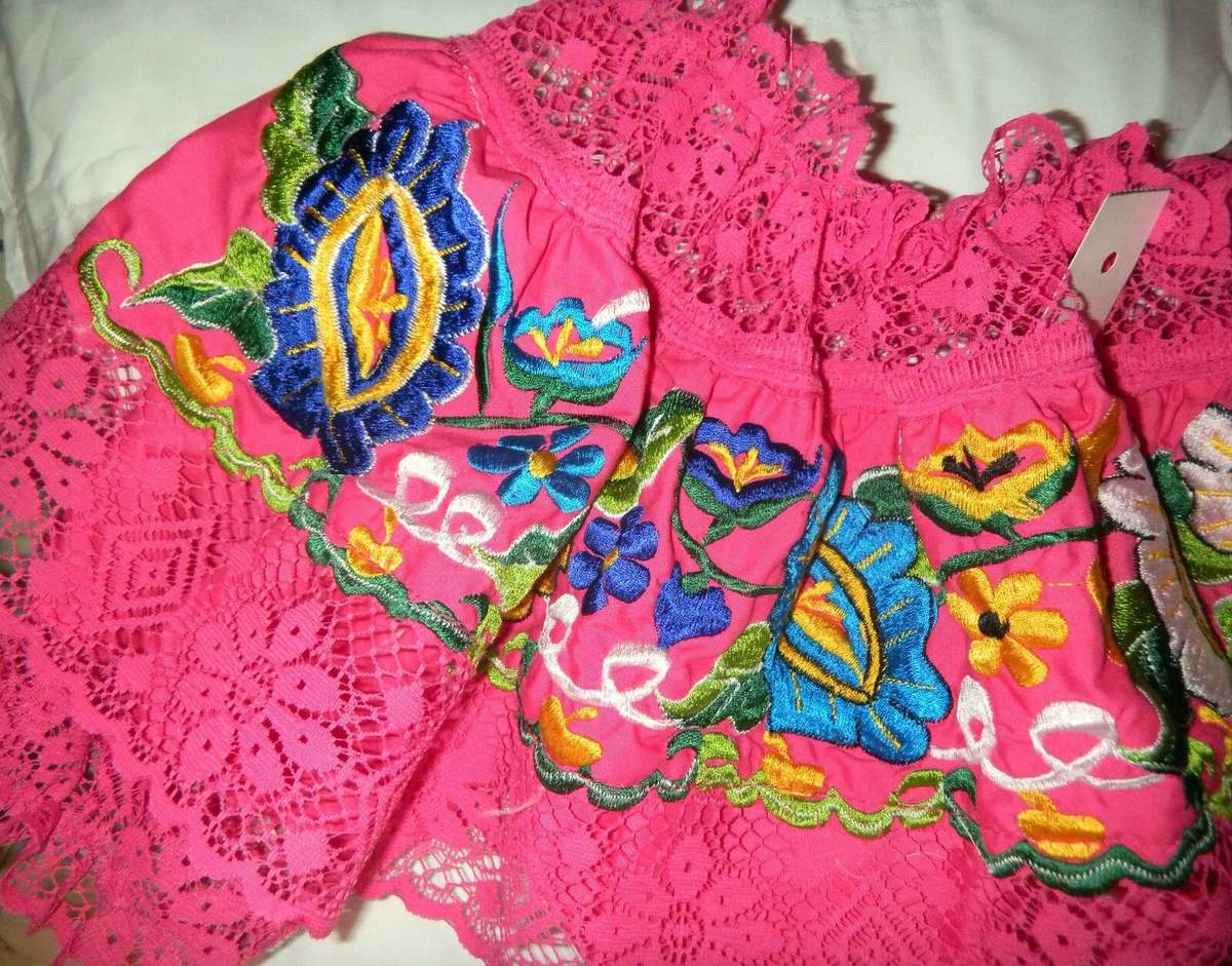 Womens Off-Shoulder Ruffle Top With Super Floral Embroidery Lace For Folklorico Dance Handmade, New Without Tags.