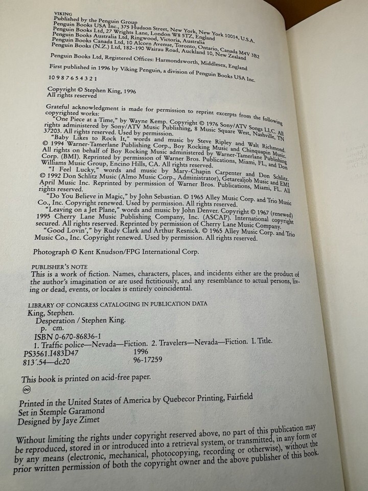Stephen King Desperation 1996 First Edition 1st Print Hardcover w/DJ Viking