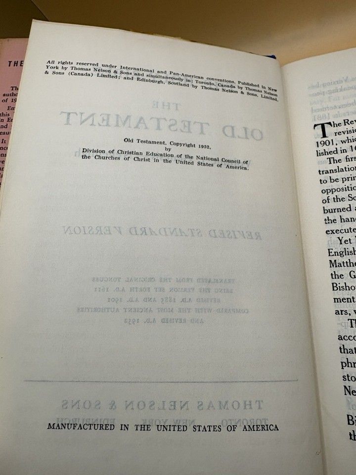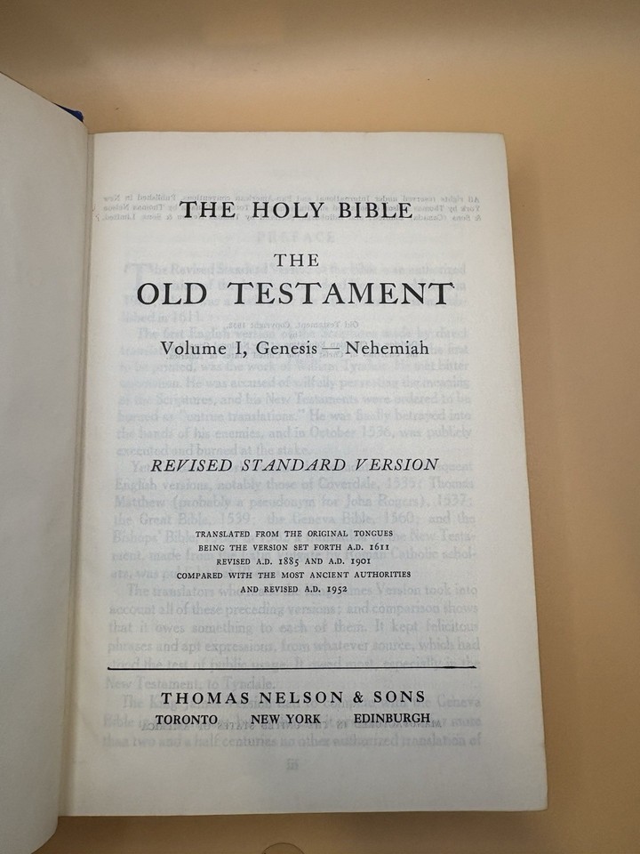 RSV Old Testament Volume 1 Genesis–Nehemiah 1952 Thomas Nelson Hardcover Bible