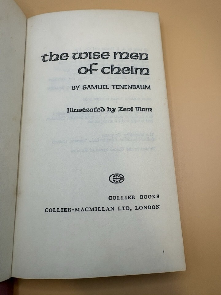 The Wise Men of Chelm Samuel Tenenbaum 1969 Collier PB Jewish Folklore Illus