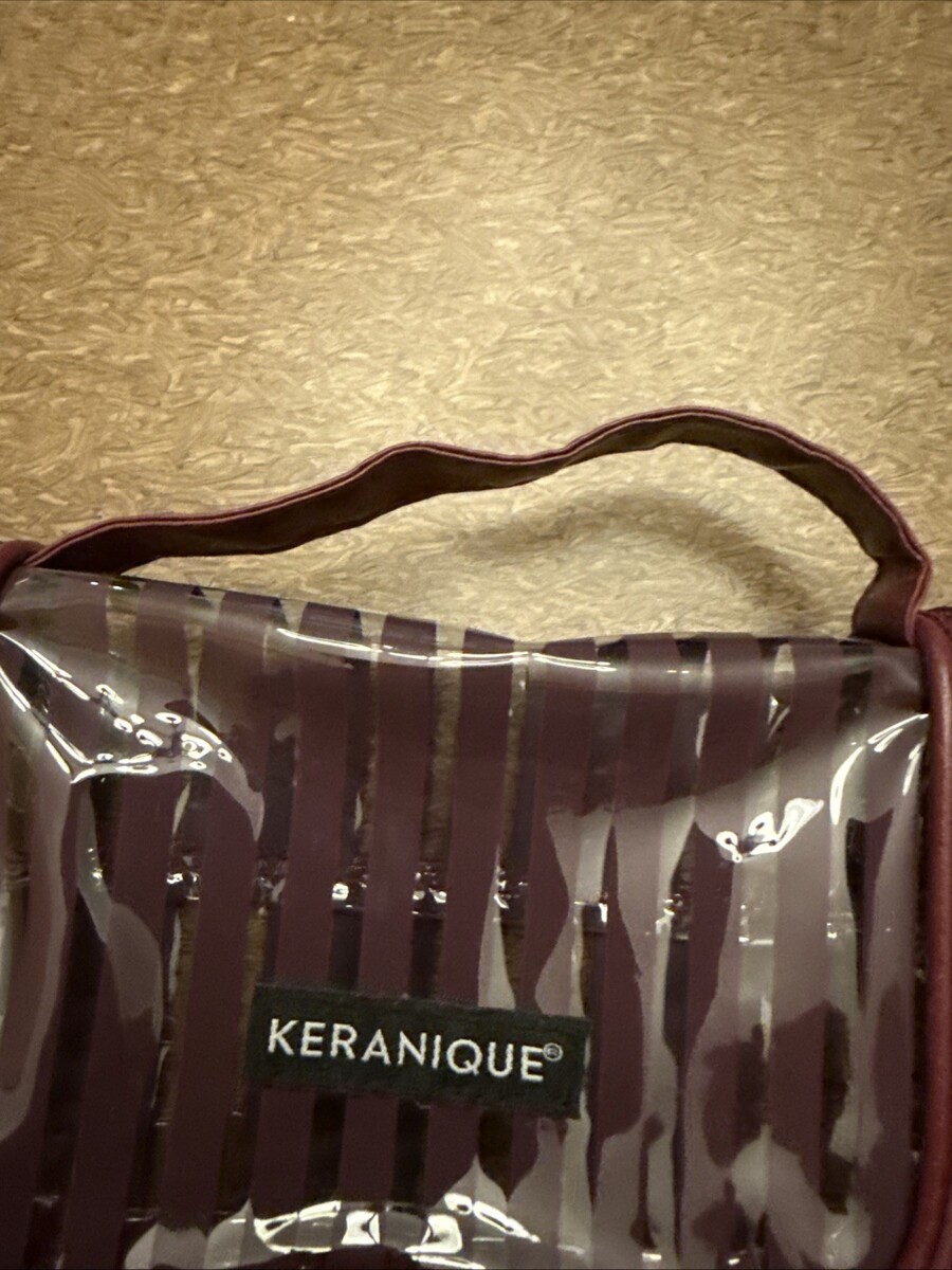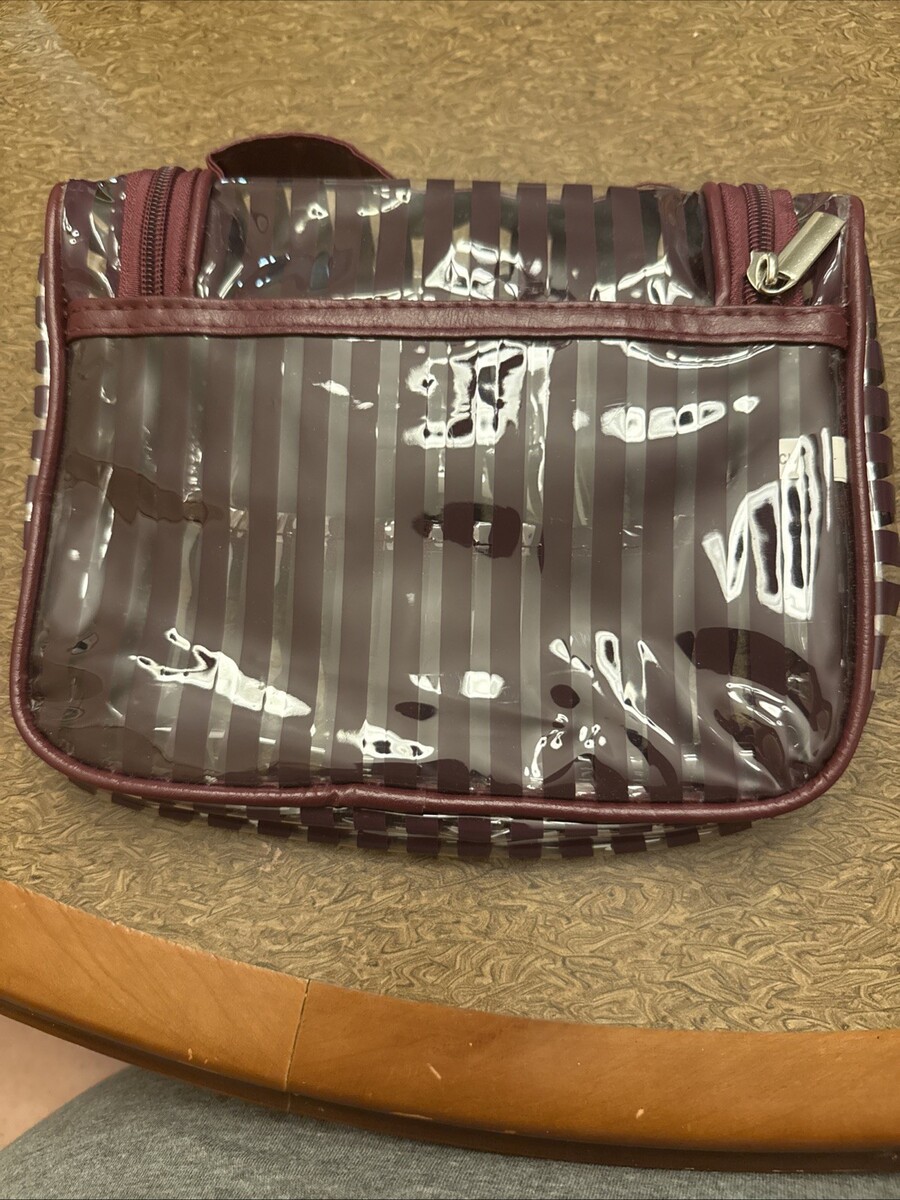 Keranique toiletry travel bag Clear with Maroon Stripes Zipper Approx 9x8x2