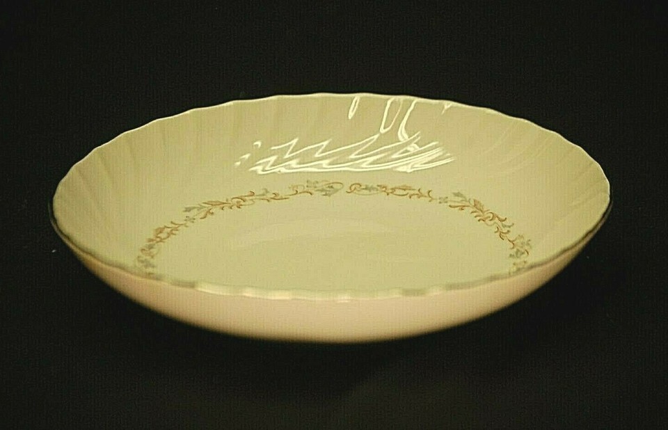 Royale by Wentworth 6205 7-1/2" Coupe Soup Bowl Swirl Tan & Gray Scroll Platinum