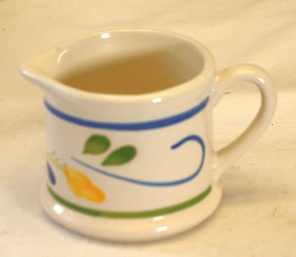Stoneware Creamer Floral Designs Blue Green Bands