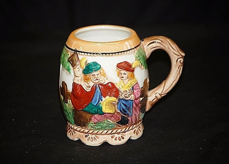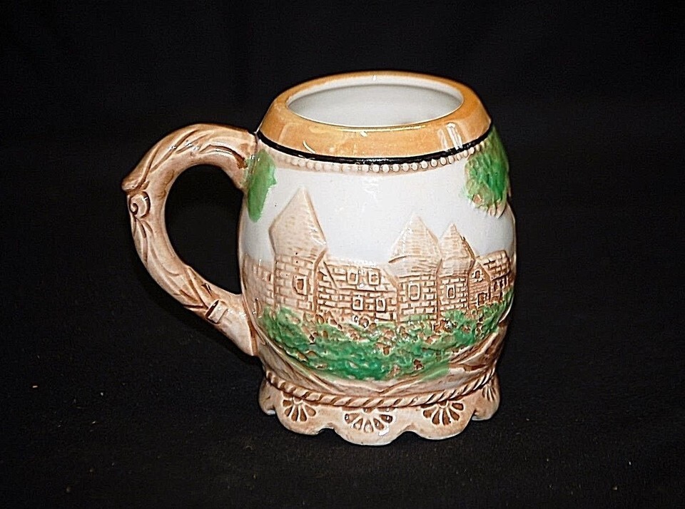 Old Vintage Beer Stein Drinkware Mug Couple Castle Scene Scalloped Bottom Edge a
