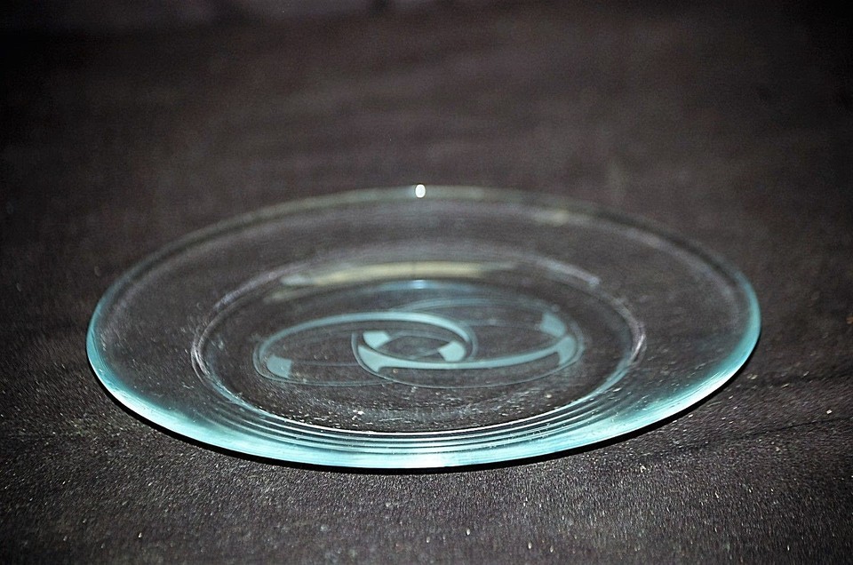 Old Vintage Clear Glass 7-3/4" Plate Interlocking Wedding Rings Center Unknown