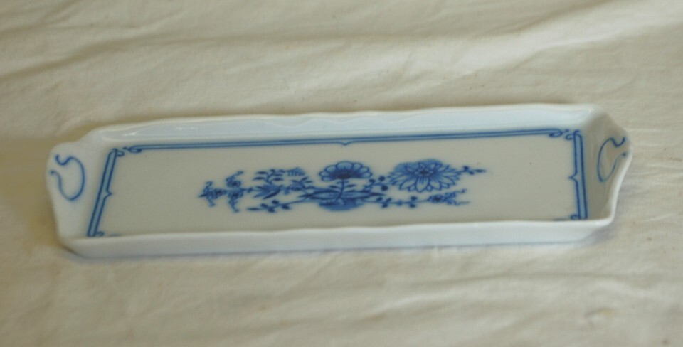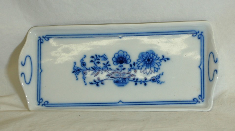 RGK Leander 1946 Boheme Butter Tray Dish Cobalt Blue Flower Pattern Loucky