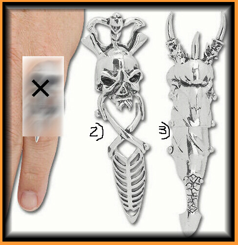 Pirate Jewelry Silver Metal Skull Warrior Viking Long Jointed Finger Rings