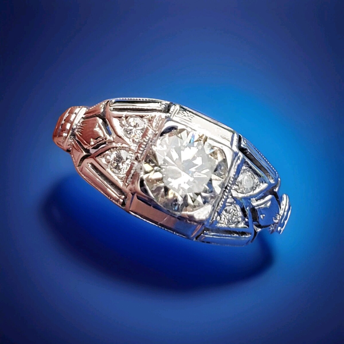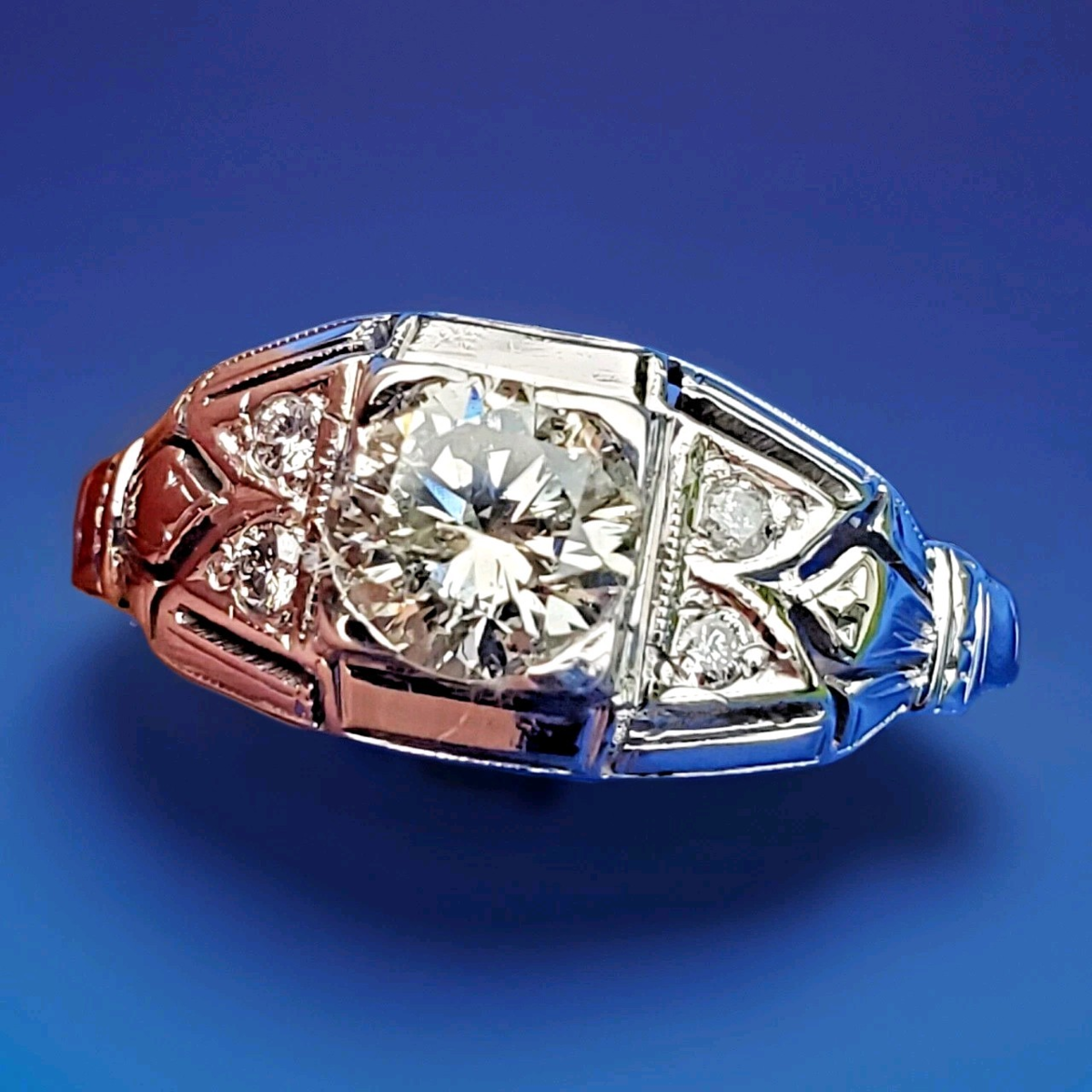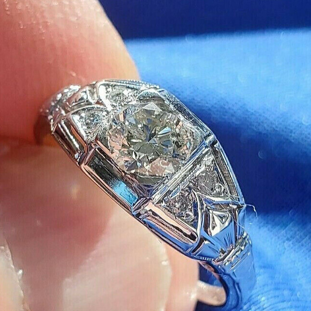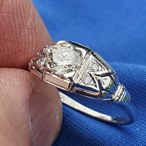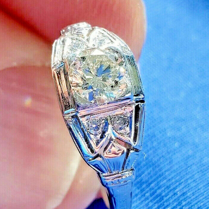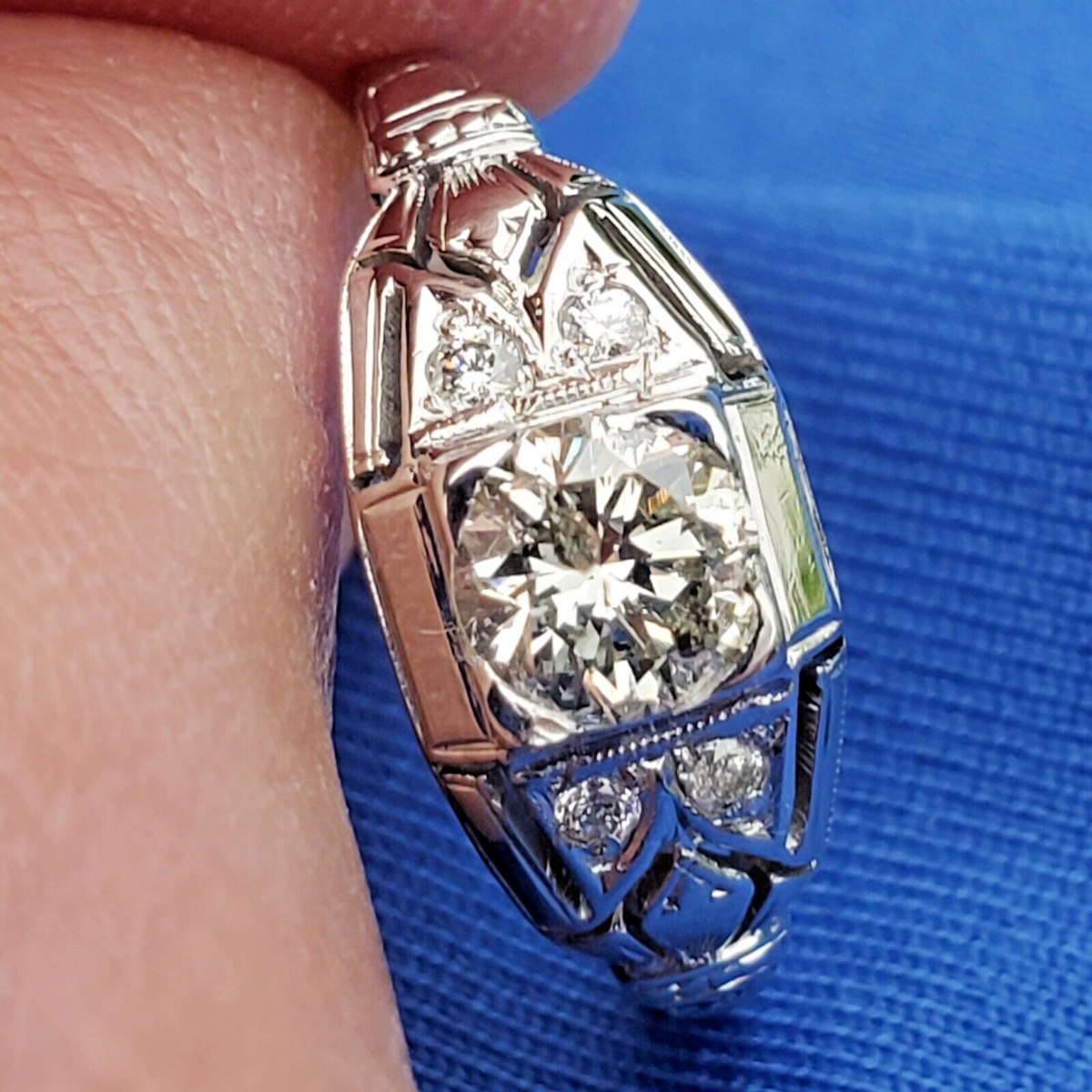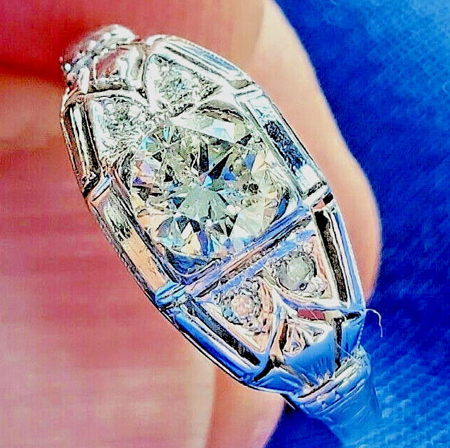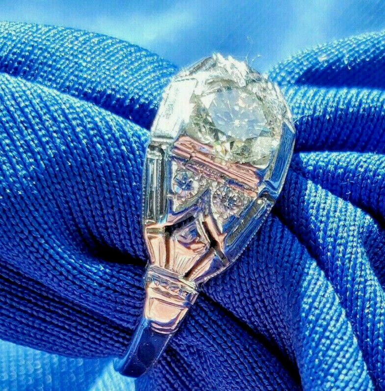 EARTH MINED DIAMOND Deco Engagement Ring ORIGINAL Gatsby ERA Solitaire 14K GOLD