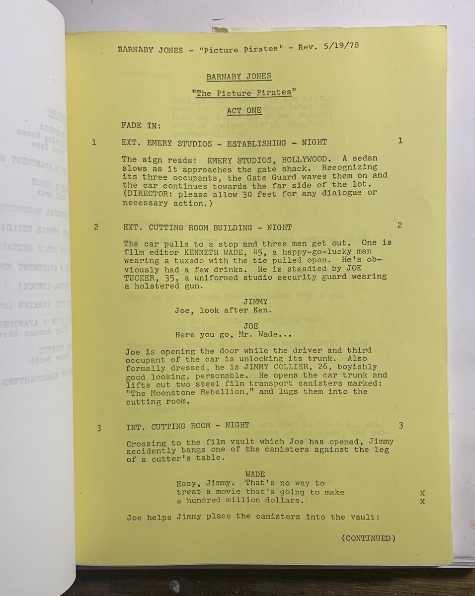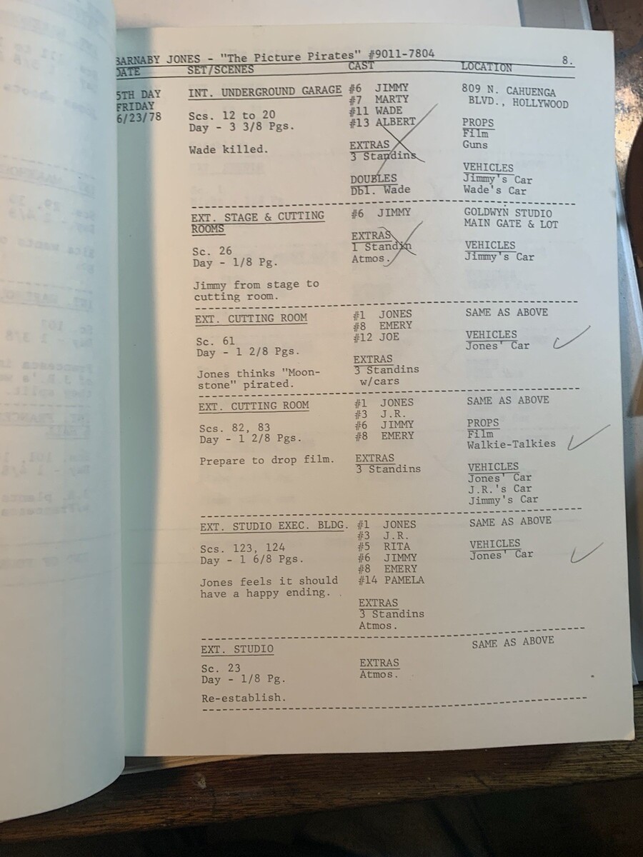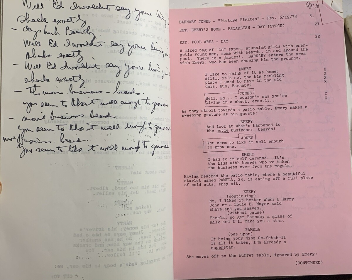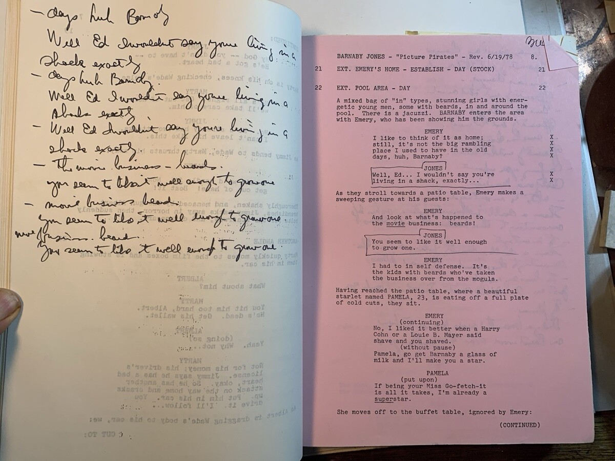 Buddy Ebsen?s personal shooting script for the BARNABY JONES episode, Quinn Martin Productions ?The Picture Pirates? from June 7, 1978.