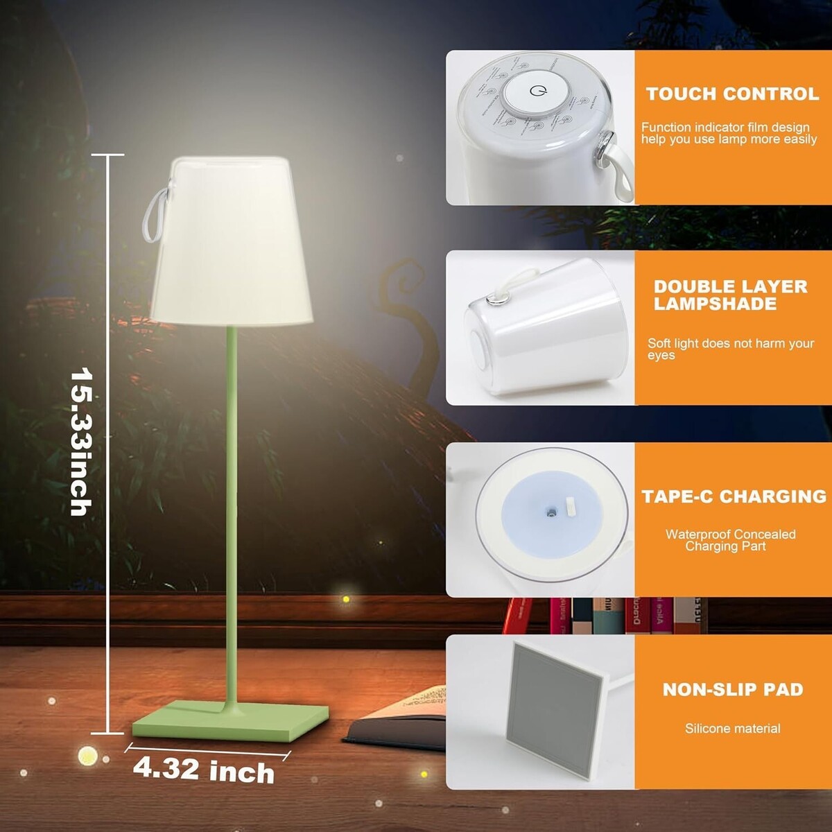 Energy Efficient, Adjustable Color Temperature, Dimmable, Cordles |