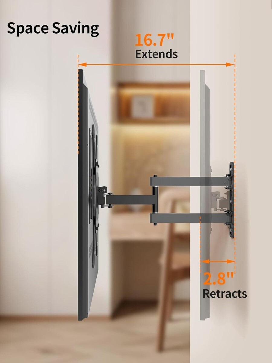 Enjoy Seamless Viewing Flexibility ? Our full motion monitor wall mount features smooth 180 rotation, letting you effortlessly switch horizontal modes. Perfect for live streams, gaming, or movie nights, it gives you the best view at every angle.