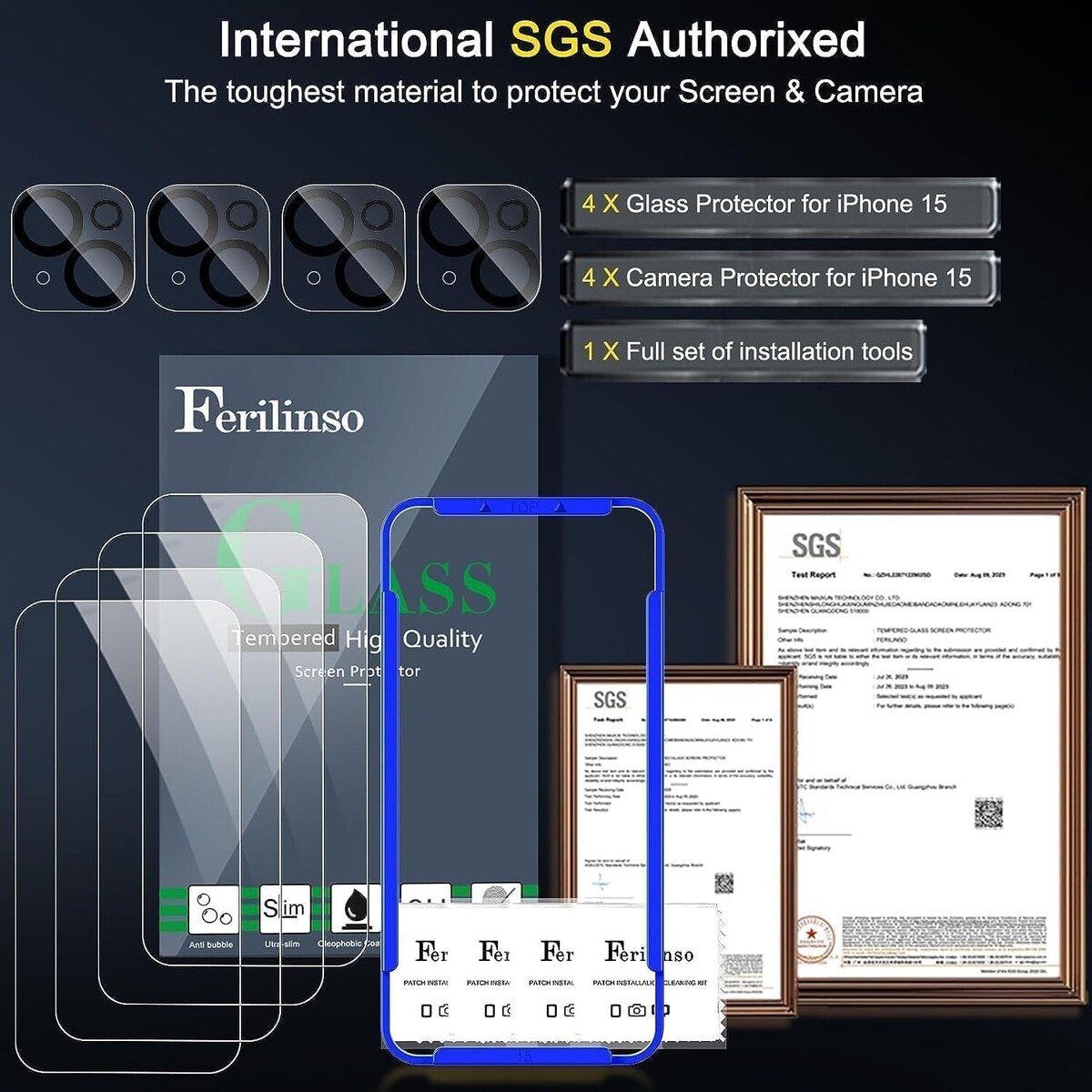 Cost-effective All-round Protection: Committed to providing one-stop purchase experience, no need spend more on other accessories. The Ferilinso bundle includes: [4 Pack Glass Screen Protector for iPhone 15] [4 Pack HD Camera Protector for iPhone 15] [1?full set of Installation Tools, Includes mounting frame and cleaning kit].
