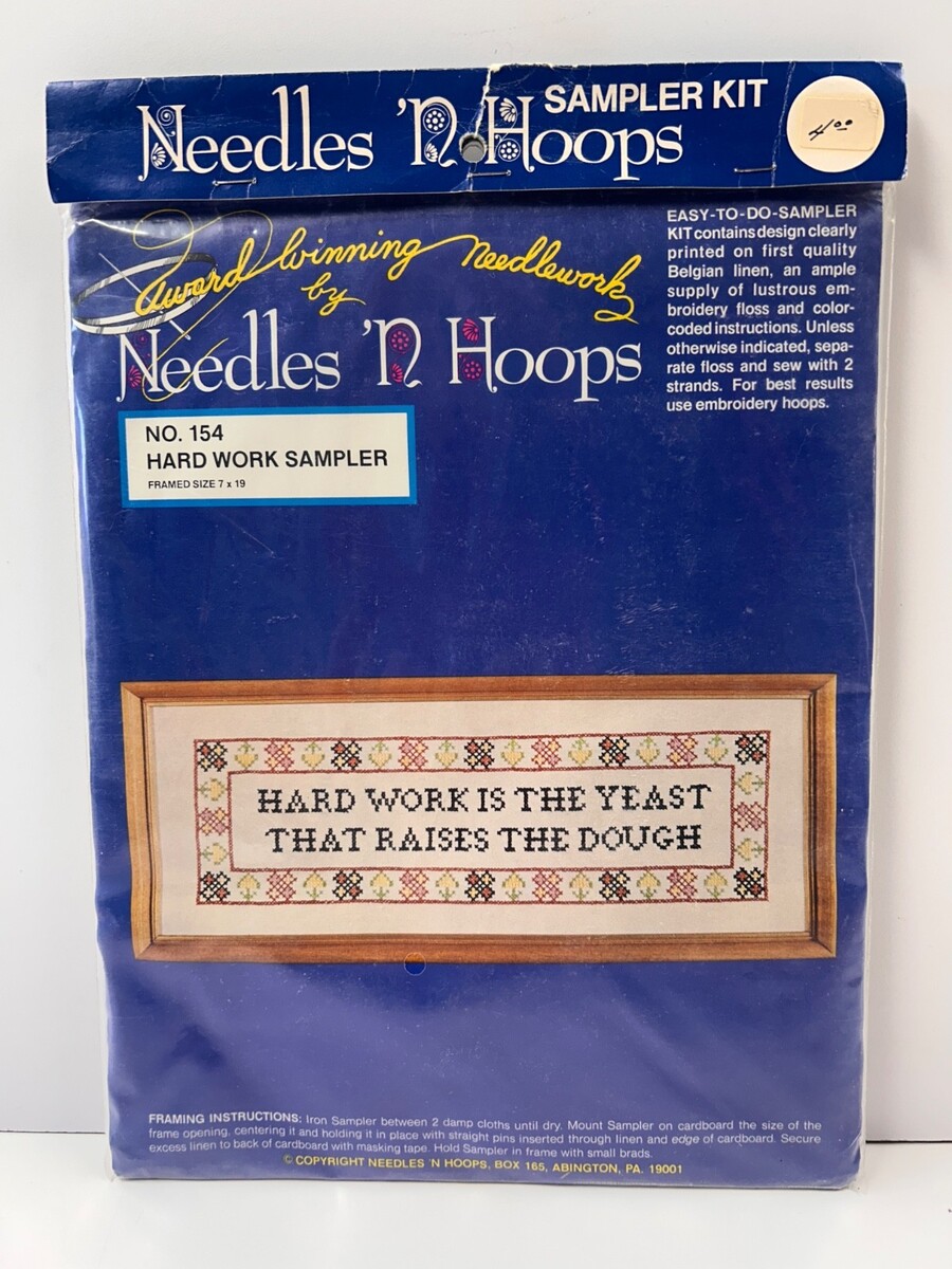 Needles 'N Hoops Cross Stitch Sampler Kit Hard Work No. 154 Unused Linen Floss