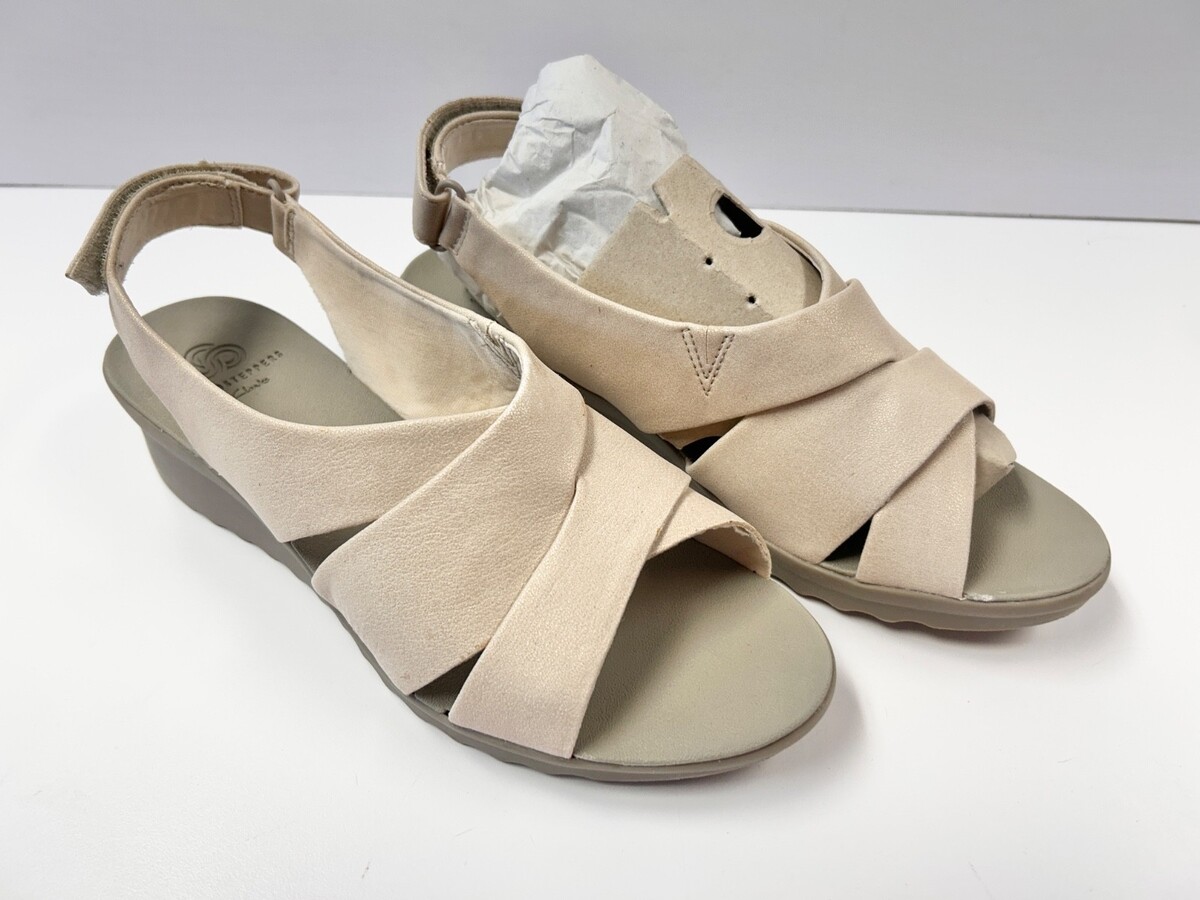 Clarks Cloudsteppers Size 9W Caddell Bright Champagne New Sandals