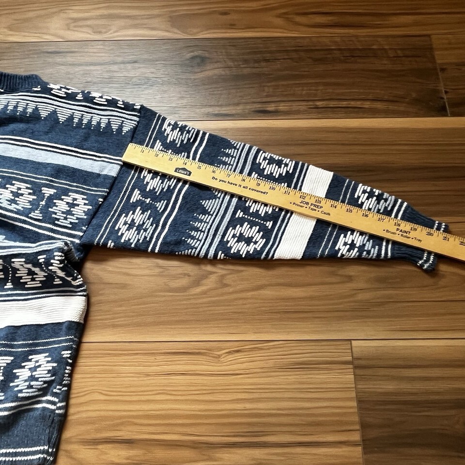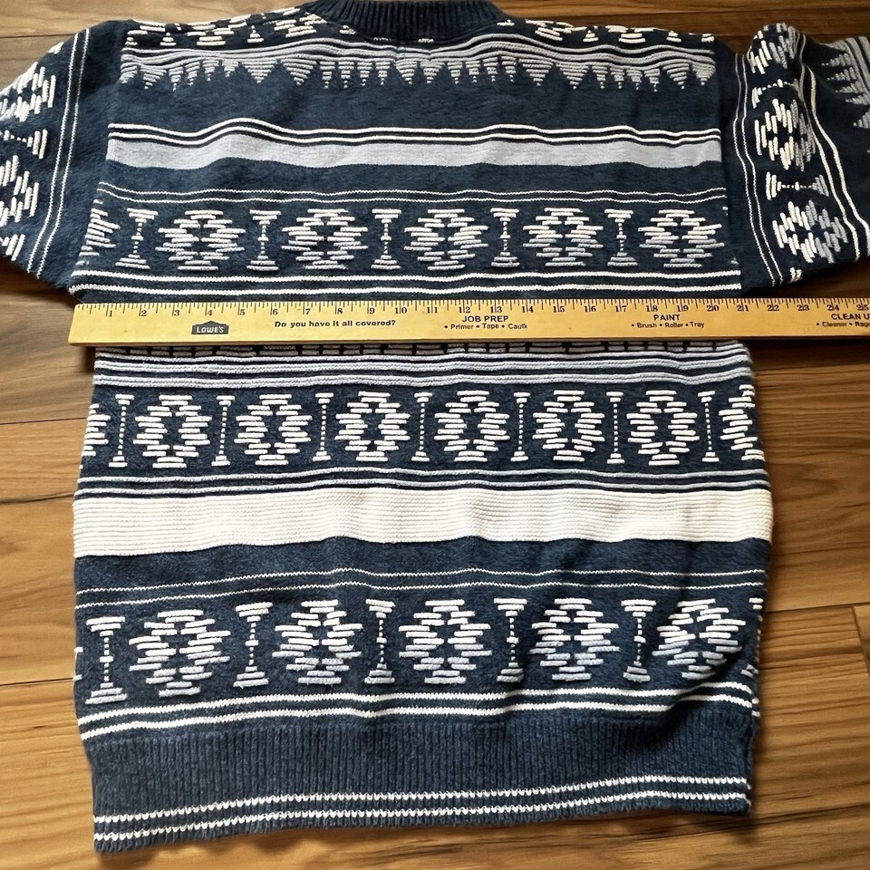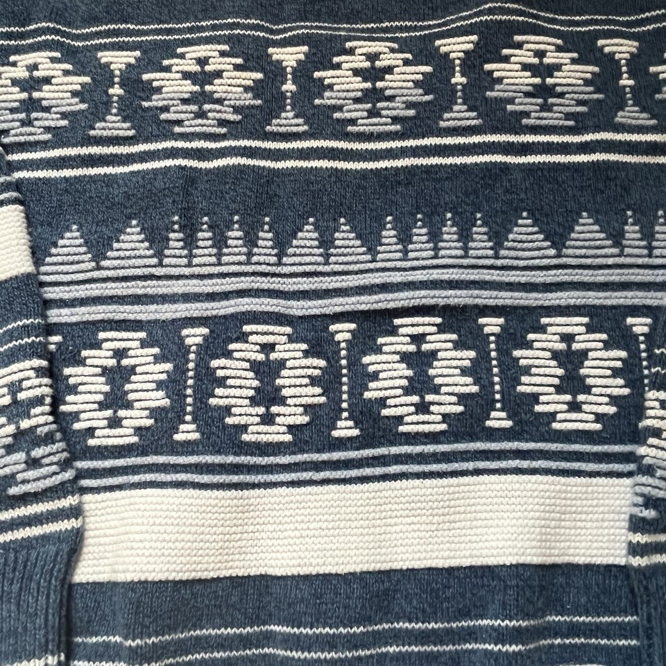 Vintage IOU Southwestern Aztec Blue White 100% Cotton Men’s Sweater Sz M USA