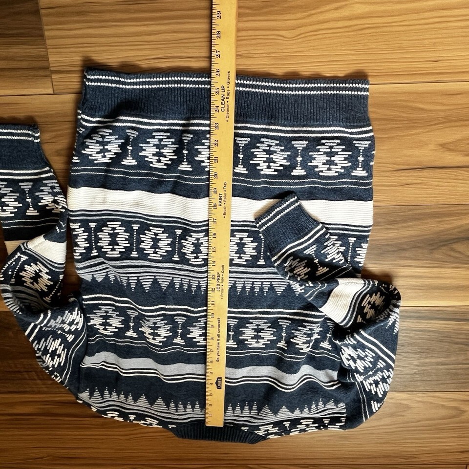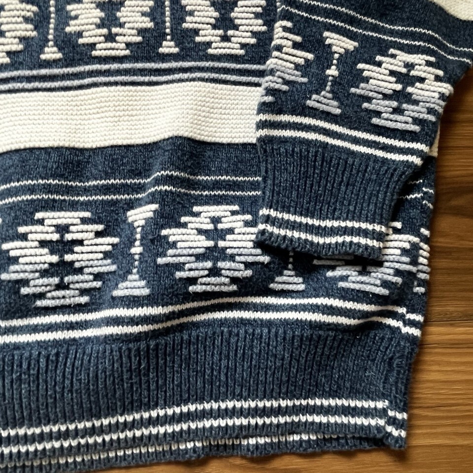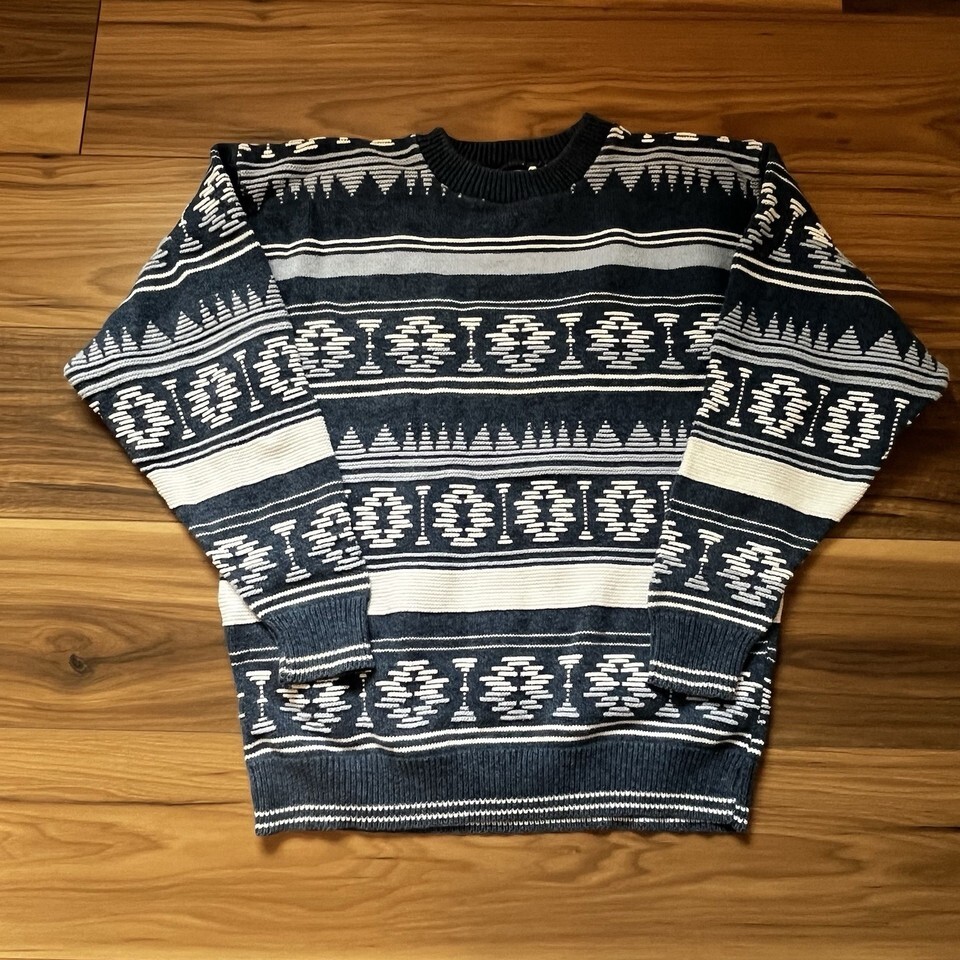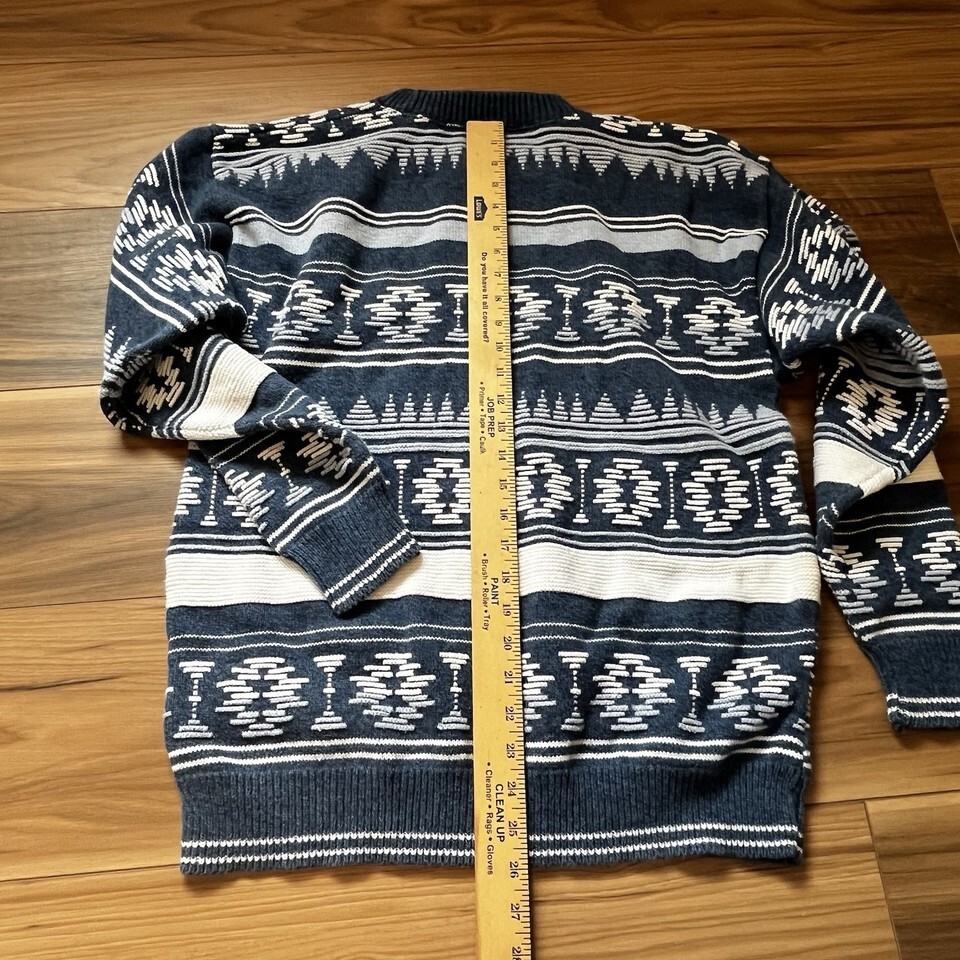 Vintage IOU Southwestern Aztec Blue White 100% Cotton Men’s Sweater Sz M USA
