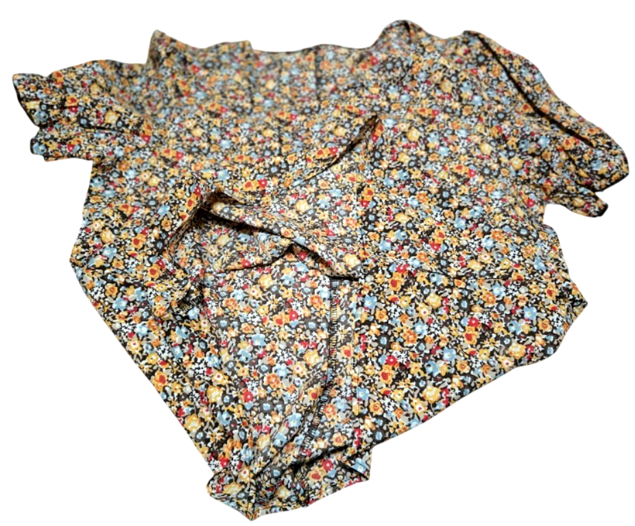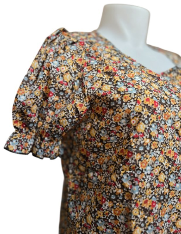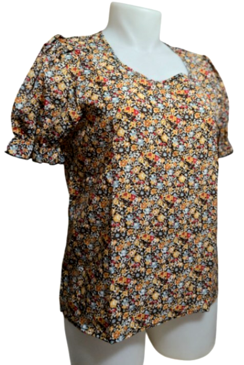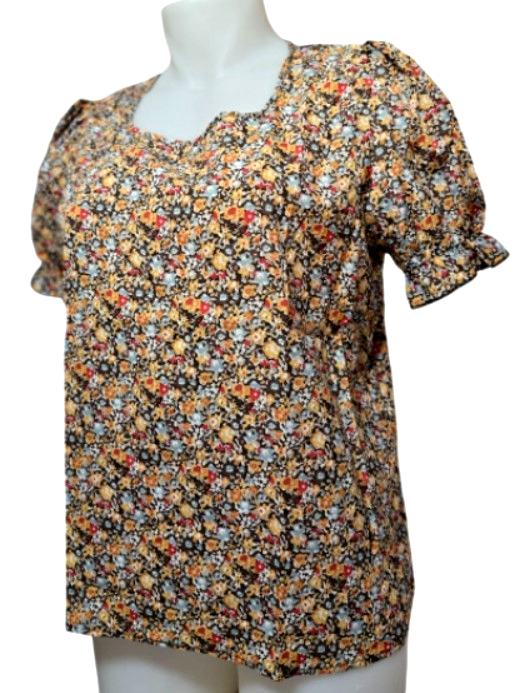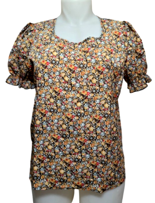 Elegant Floral Women Square Neck Short Sleeve Puffed Sleeves Blouse (XL) NEW