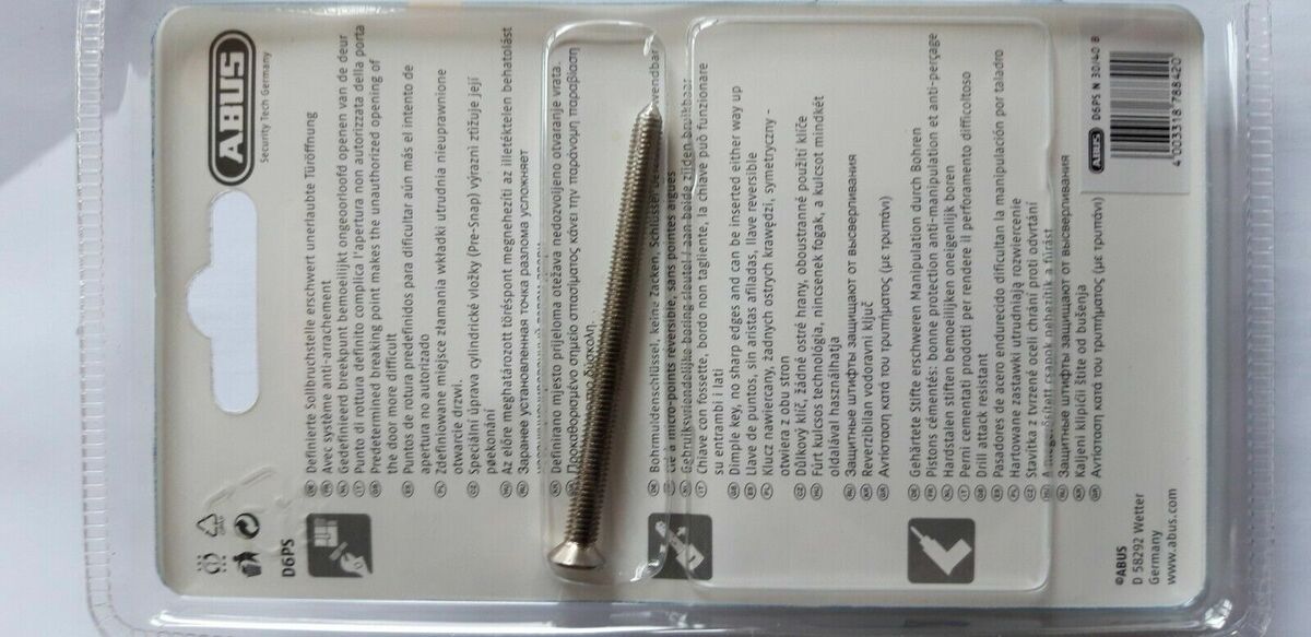 ABUS D6PS /Break Secure High Security Cylinder Lock/ 5 Keys and Keycode Card