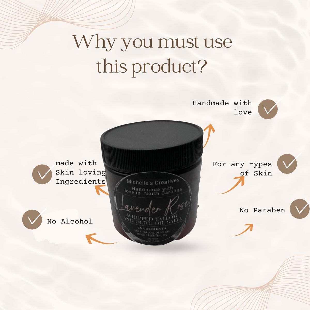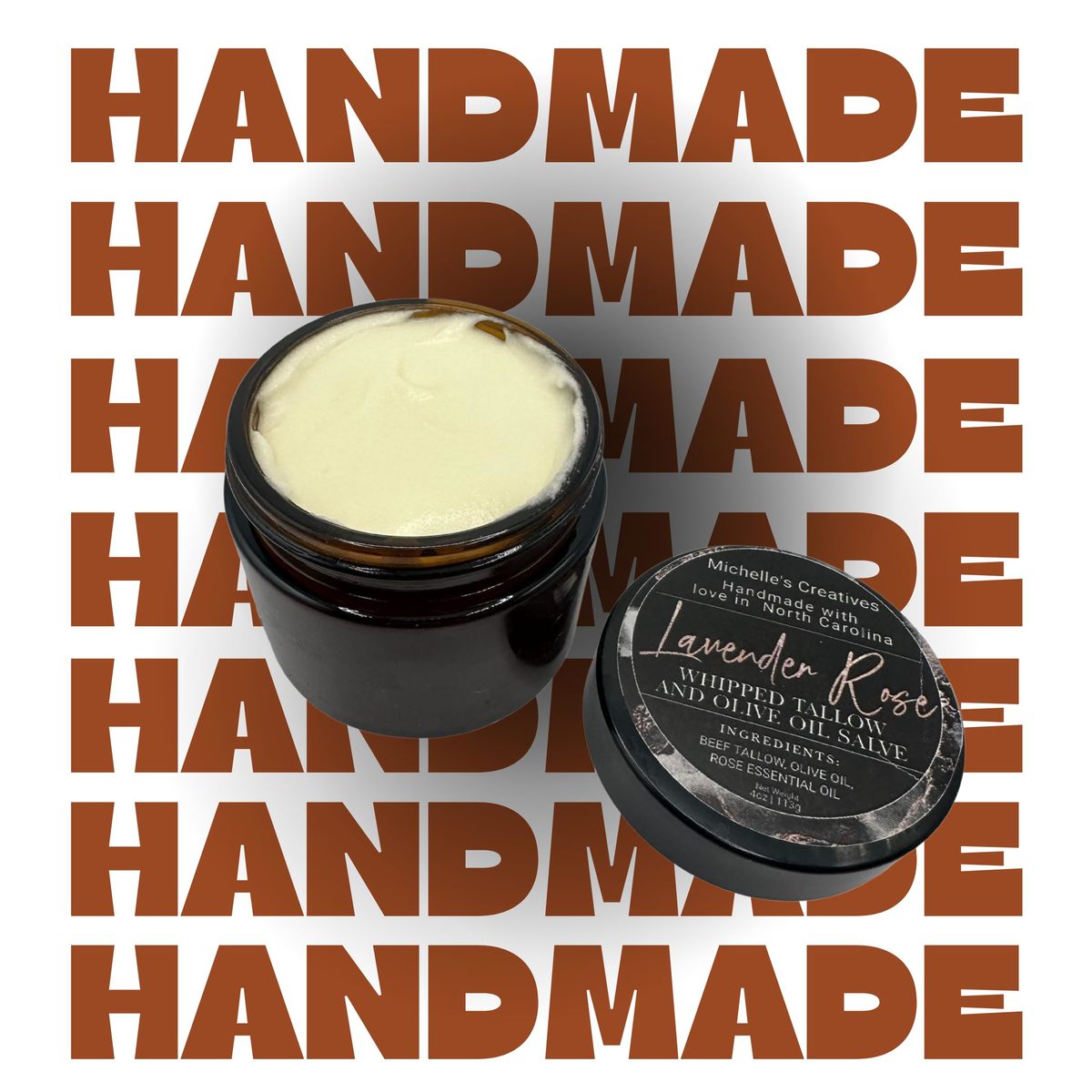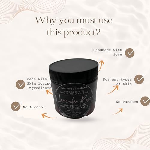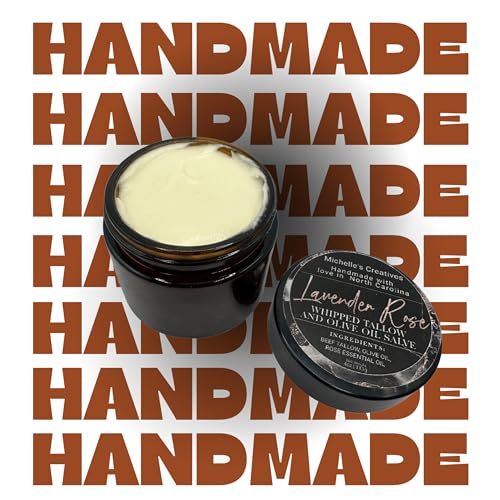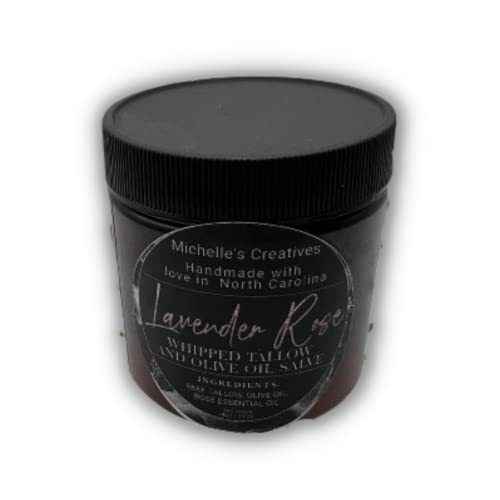 Treat yourself to the ultimate in natural skincare with Michelle's Creatives Lavender Rose Tallow Whipped Salve. Your skin will thank you!