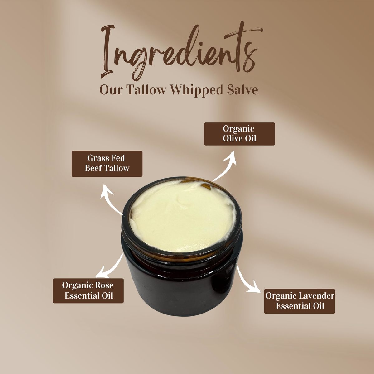 Our salve is specially formulated to provide intense hydration and nourishment for dry skin, making it an essential addition to your skincare routine. The rich combination of grass-fed beef tallow and organic olive oil creates a luxurious texture that melts into your skin, leaving it feeling soft, supple, and deeply moisturized.