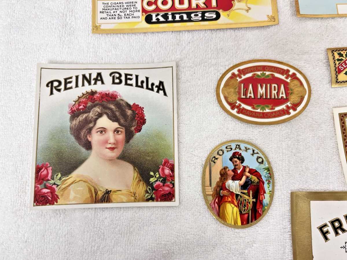 Lot 9 Antique Cigar Box Tobacco Labels Victory Reina Bella Champ Clark Cornwall