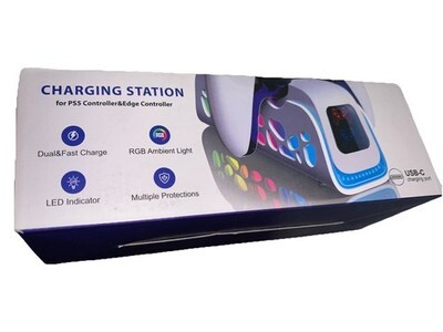 PS5 Dual Controller Charging Dock RGB LED Charger Station for PS5/Slim/Pro