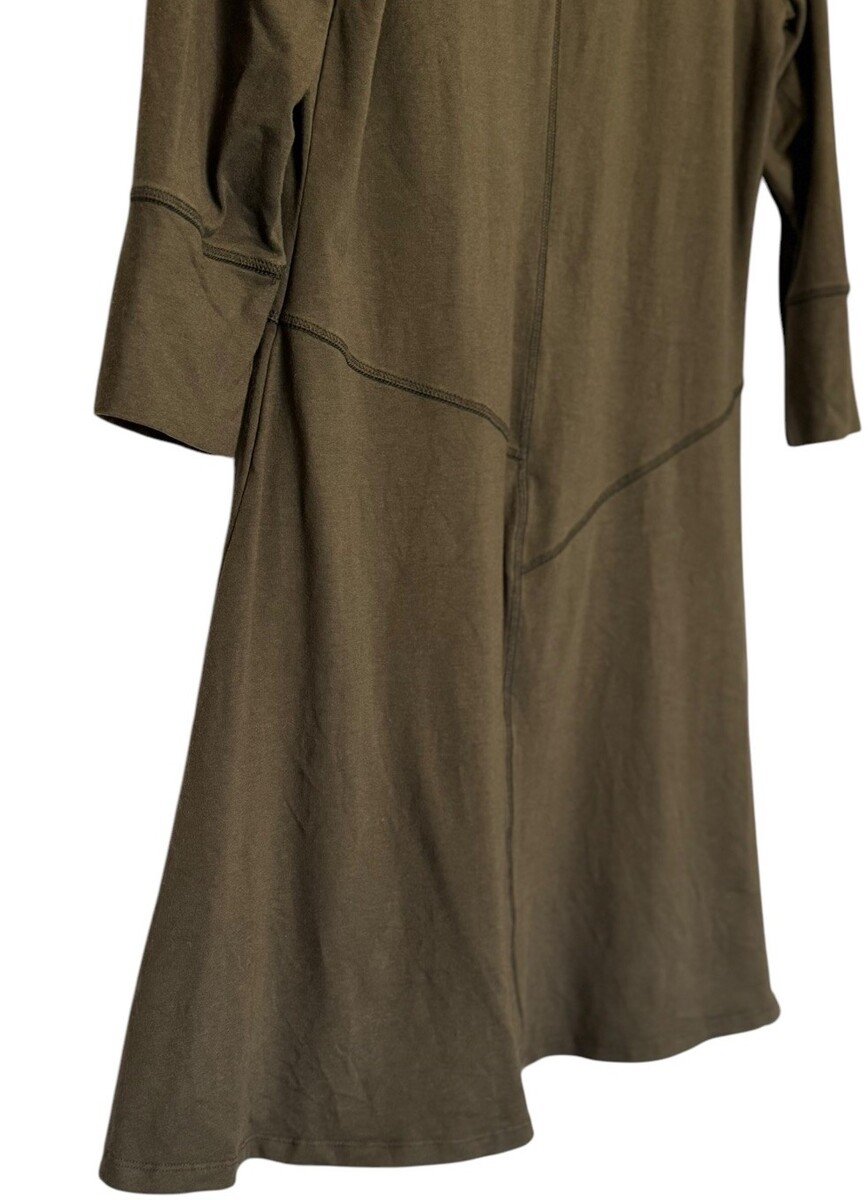 Blue Canoe Slub Puzzle Dress Size L Olive Green Organic Cotton Bamboo A-Line USA