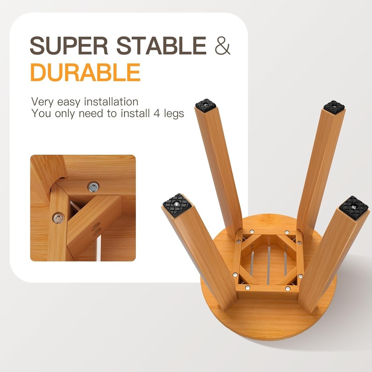 Stable Design: Crafted from solid bamboo with reinforced hex screws and double bolts for enduring durability.