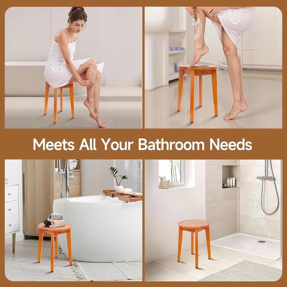 Multi-Functional 16-Inch Bamboo Shower Stool ? Perfect for Shaving and Bathing