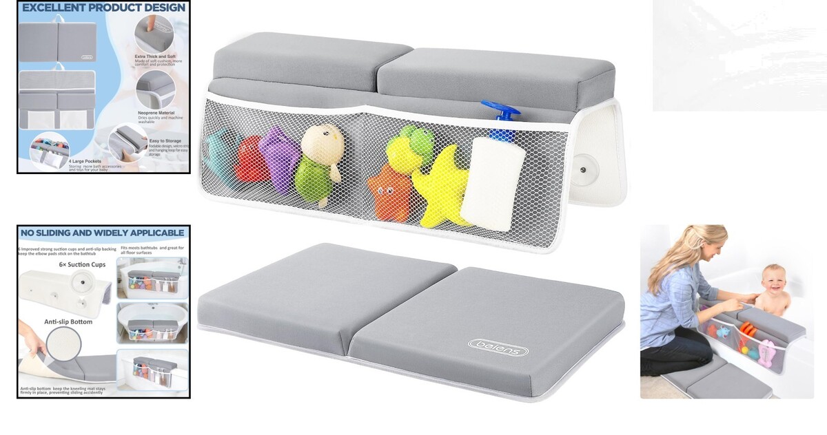 Transform bath time into a joyous and pain-free experience with our Portable Baby Bath Kneeler Elbow Rest Mat. Designed with your comfort in mind, this water-friendly neoprene mat provides thick cushioning for your knees and elbows, relieving any discomfort as you care for your beloved child. With a secure non-slip design and generous storage pockets, everything you need is always within , making bathing a stress-free activity.