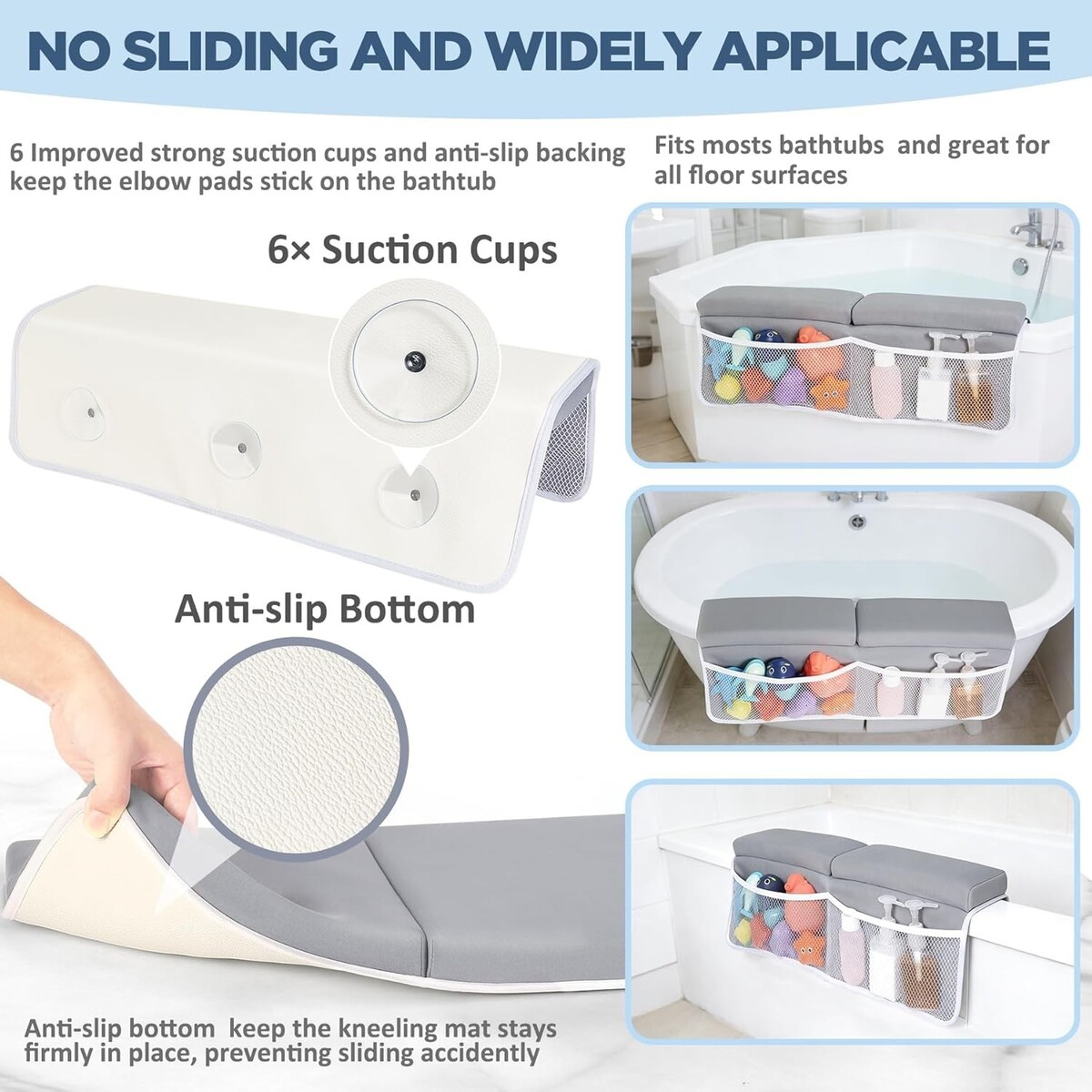 Non-slip design with 6 strong suction cups for secure placement in the bathtub.