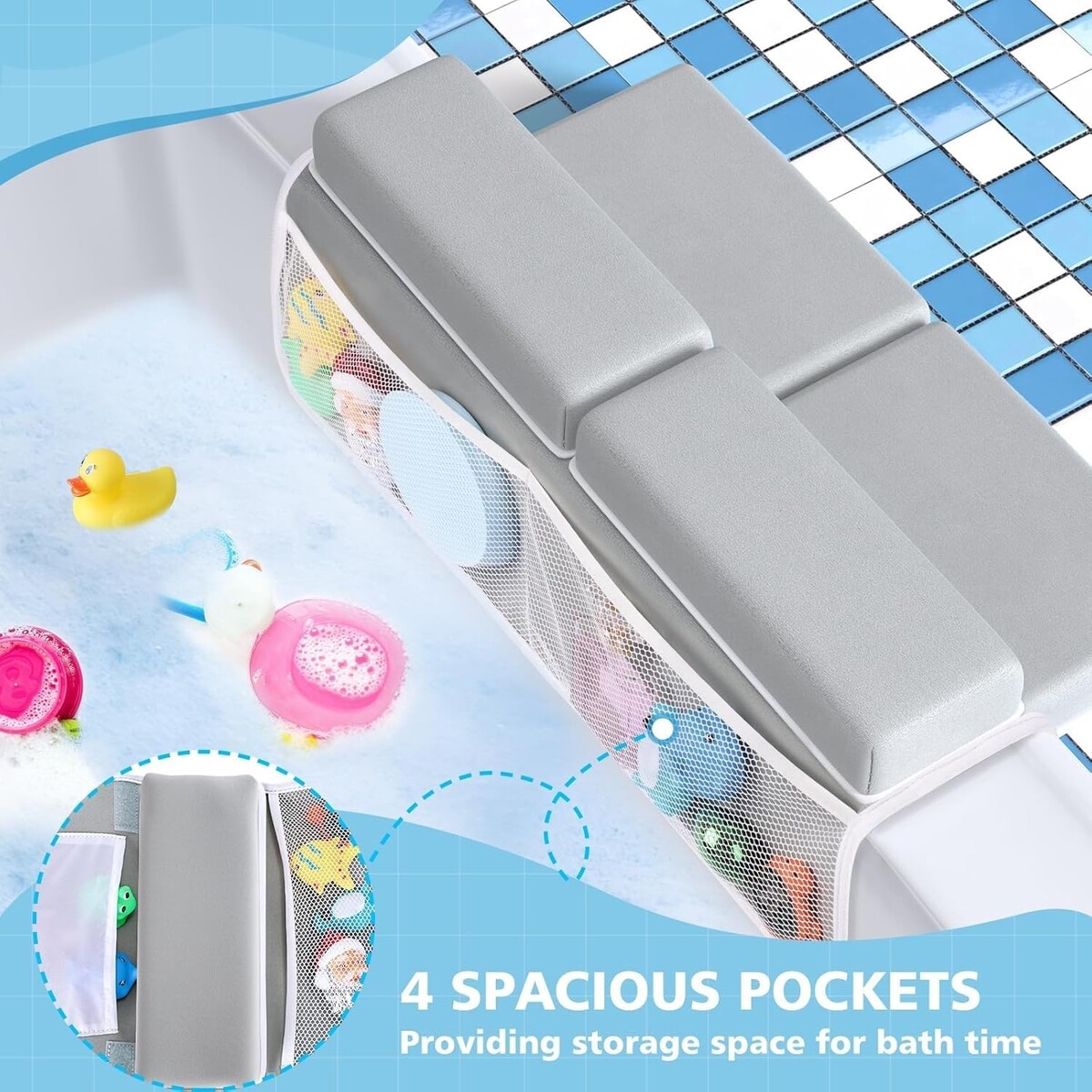 1.5" Extra Thick Baby Bath Kneeler & Elbow Rest Set with 4 Storage Pockets
