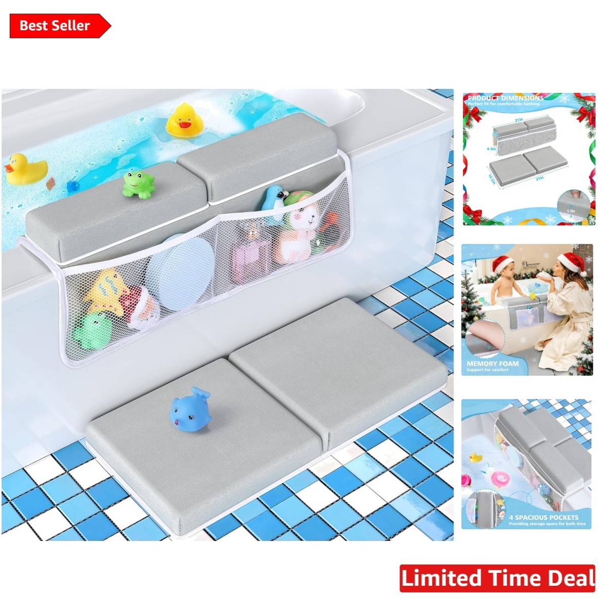 Stable Dual-Anchor Security: High-friction rubberized bottom combined with silicone suction cups keeps pads securely in place during those splashy bath times.