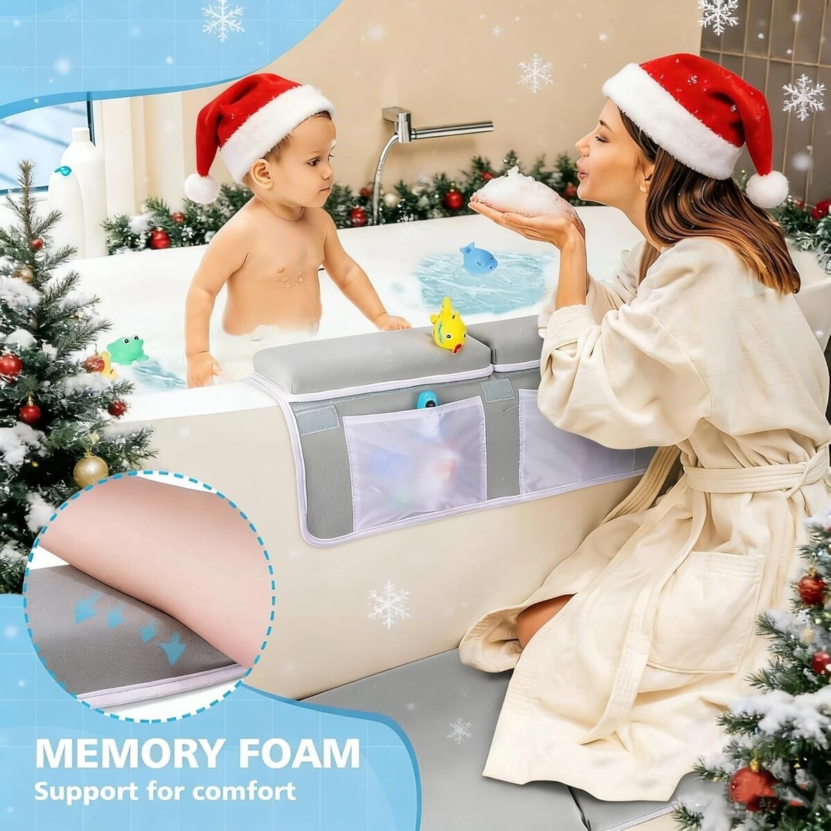 Don?t compromise on comfort and safety while bathing your baby. Our 1.5" Extra Thick Baby Bath Kneeler Elbow Rest Set is specially designed with enhanced memory foam to provide maximum cushioning and support. The innovative dual-anchor security system ensures stability against a backdrop of playful splashes, while the smart storage keeps all bath essentials perfectly organized.