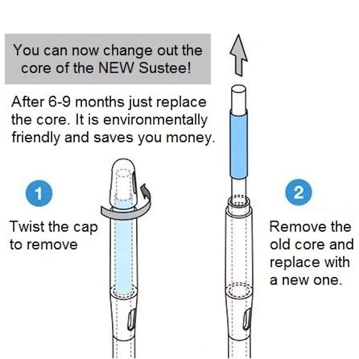 Each stick boasts a refillable core that easily allows for core replacement, lasting approximately 6-9 .