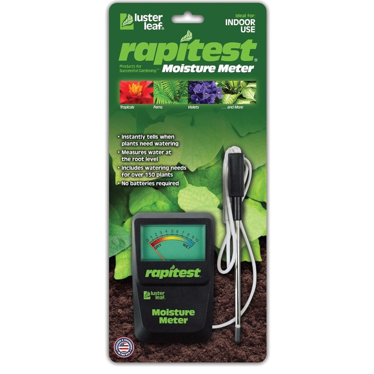 Luster Leaf 1820 Soil Moisture Meter - Effortless Plant Care Without Batteries