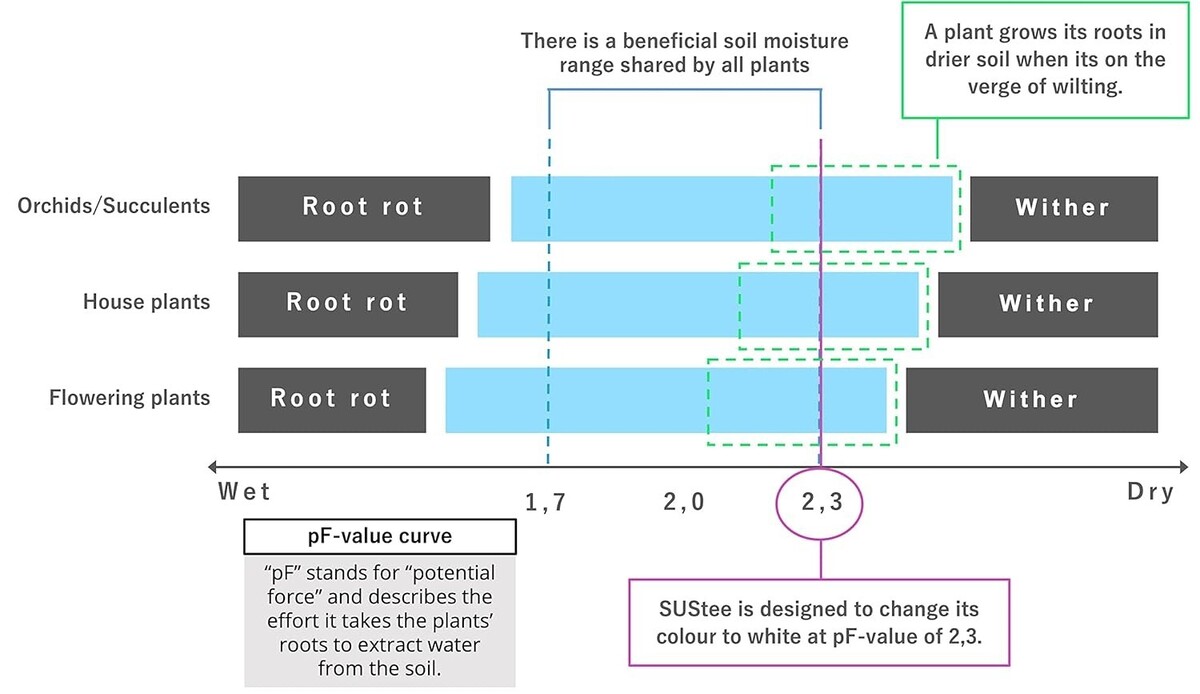 Unique color-changing indicator that visually communicates watering needs?white signals a thirsty plant, while blue indicates it has been adequately watered.