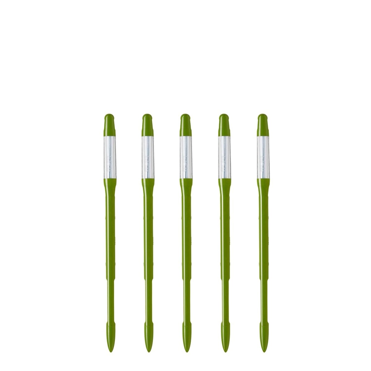 Set includes five refillable watering sticks in a refreshing green hue.