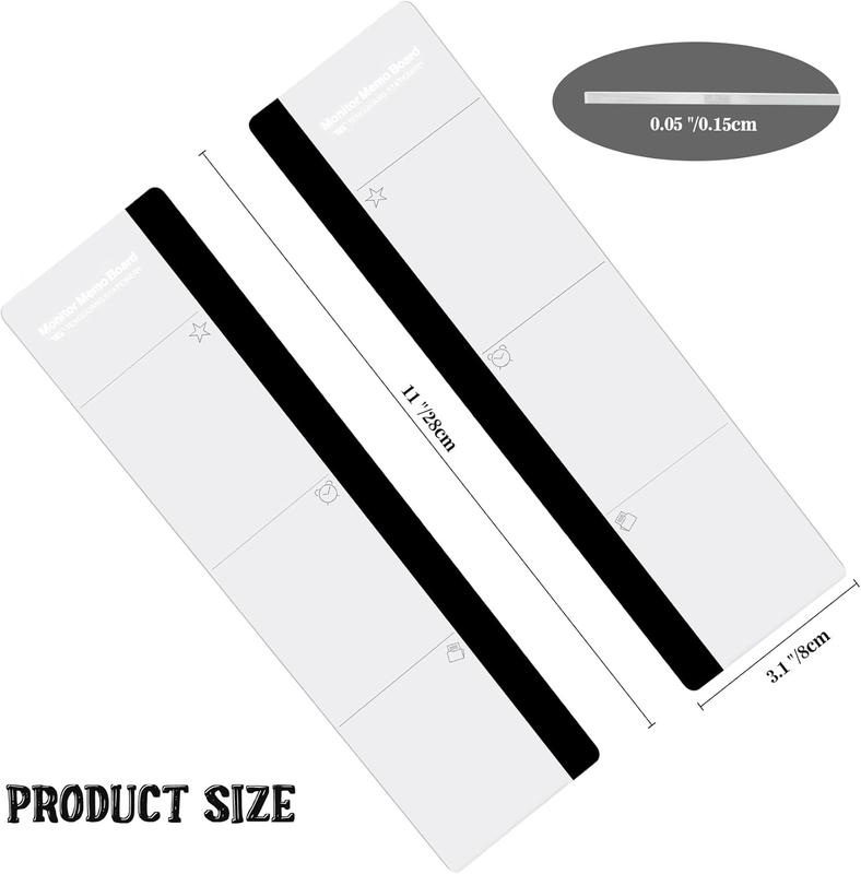 [MULTIFUNCTIONAL]You'll get 2 pieces computer monitor memo boards that you can stick on the left and right edges of your monitor, and they're the perfect office desk organizers and accessories. Computer monitor side panels desktop organizer are suitable for home work or office,bringing convenience. Desktop memo is used to organize meeting memos, important messages, business cards, planning notes.Paste on the message board to keep track of important things and to-do items to prevent forgetting.