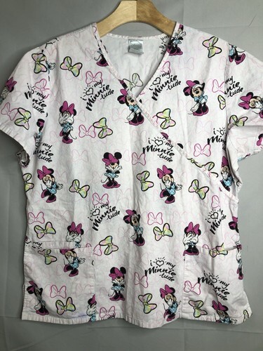 Curious George Unisex Short Sleeve Scrub Top 2 Pockets Cartoon Monkey Bananas M
