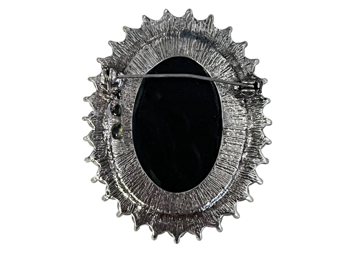 Vintage Cameo Brooch Black Gray Lady Portrait Pin Rhinestone Frame 2”