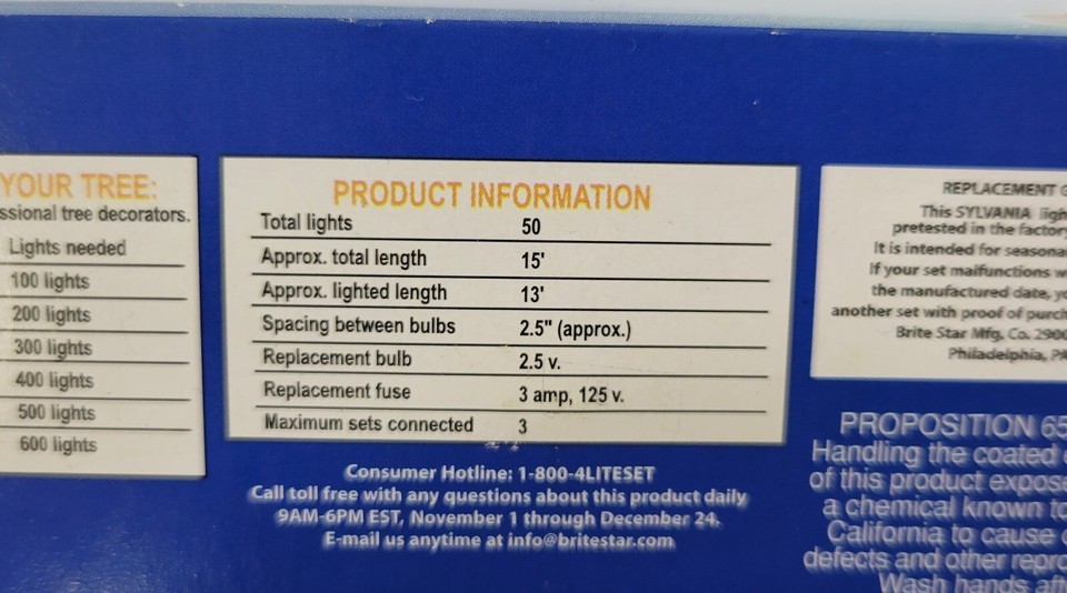 PV) Sylvania 50 Mini Bulb Christmas Tree Lights, 15 feet - Clear