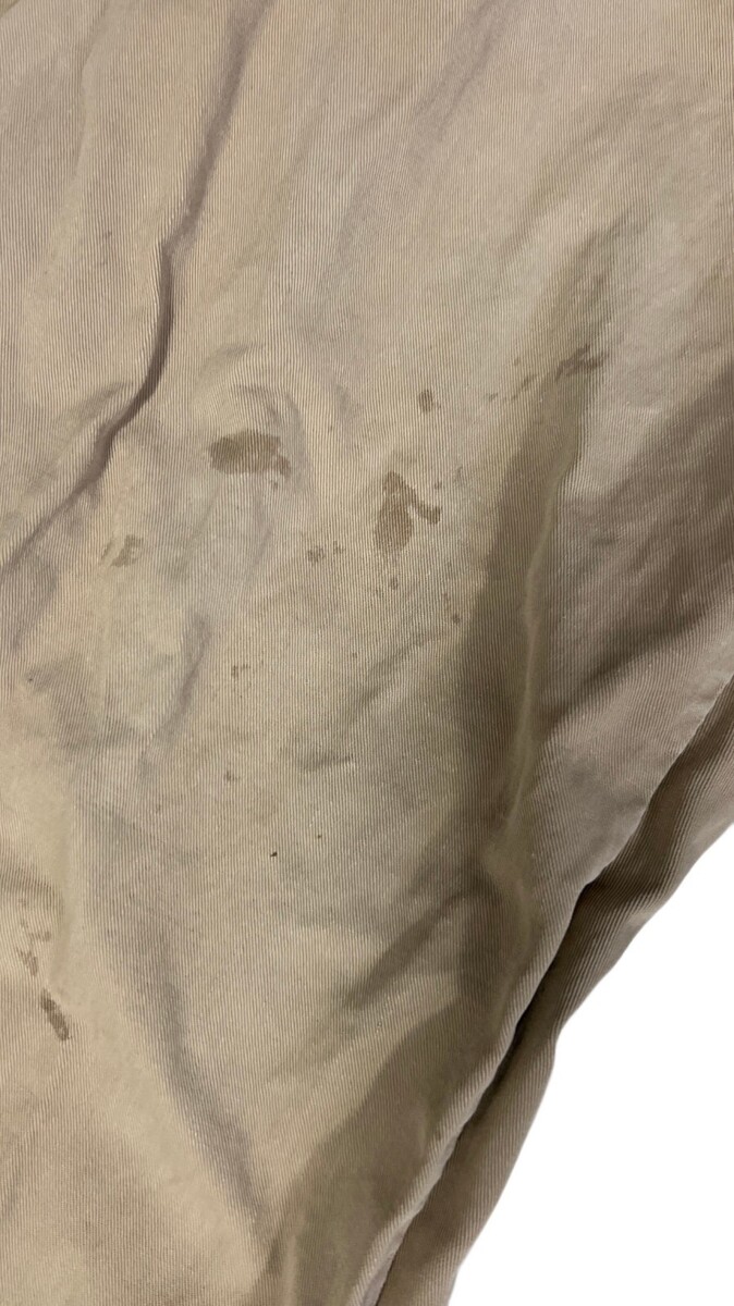 Fabric: 100% cotton khaki twill · Gusseted seat · Distinctive belt loops · Cuffed hem · Metal zipper (pull missing, but functional)