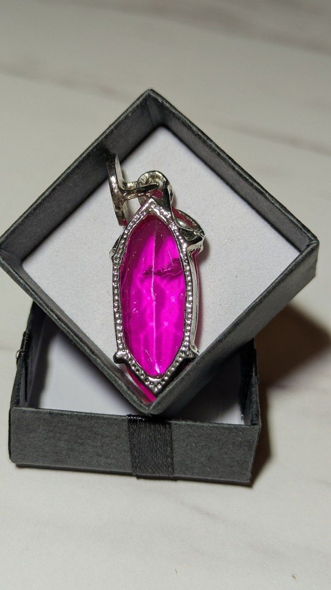 Made in China, this pendant features a vibrant magenta color scheme that evokes a sense of magic and fantasy.