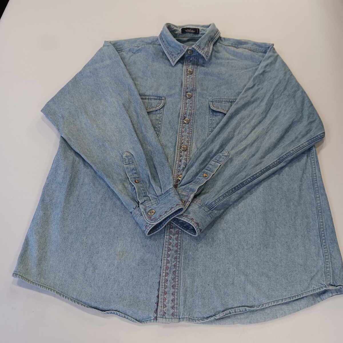 Vintage Single Needle Tailoring RN#58909 Women's Cotton Blue Denim Shirt Size L