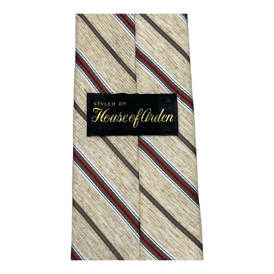 Vintage House of Arden Striped Necktie – Beige, Brown & Red