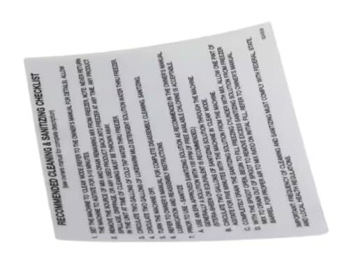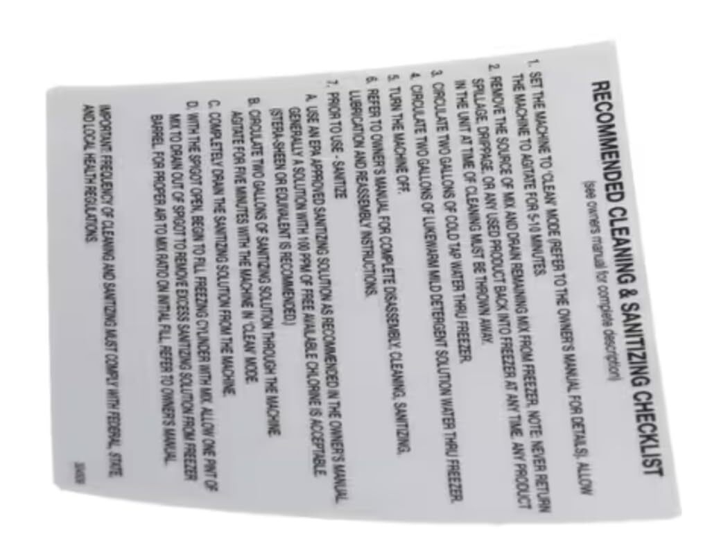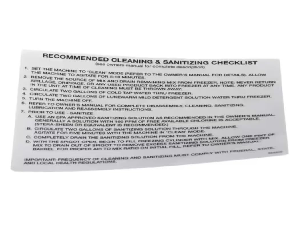 Fits Stoelting 324509 Decal/Label, Cleaning Sanitizing, Soft Serve/Shake for M202-209A, SO318, F231-109I2YG2AD2WF