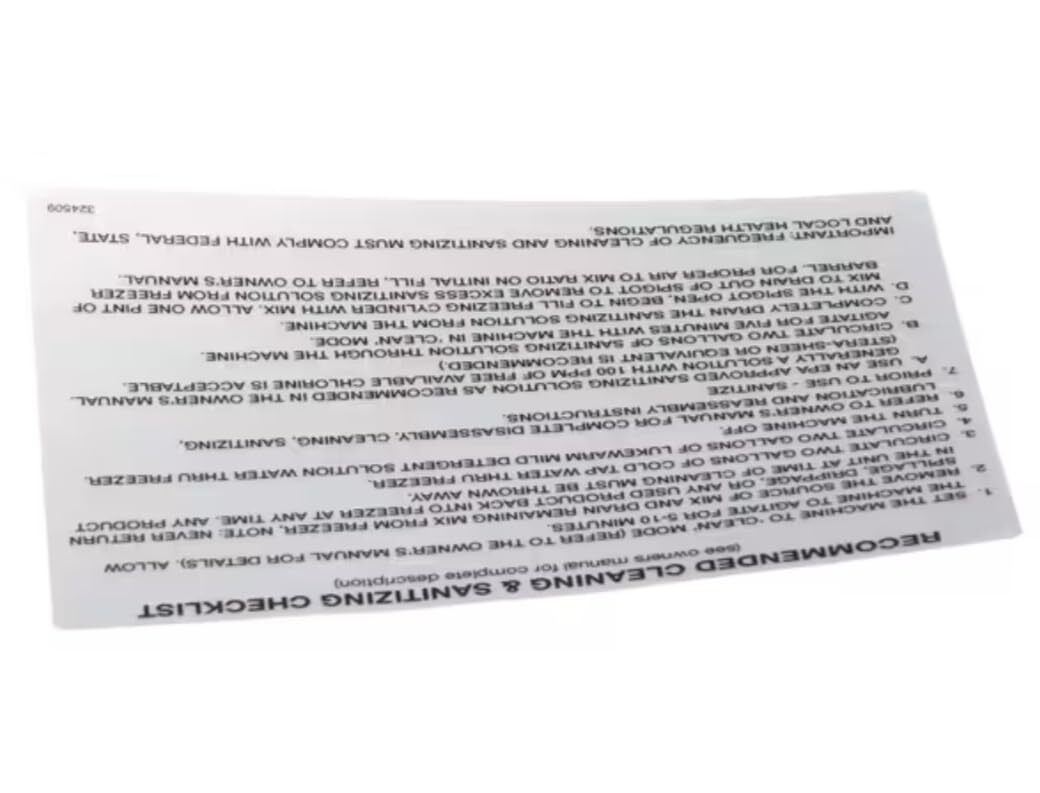 Fits Stoelting 324509 Decal/Label, Cleaning & Sanitizing, Soft Serve/Shake for M