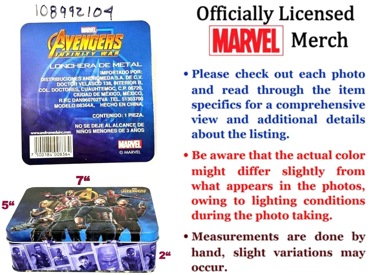 Showcase your favorite heroes with this Marvel Comics Avengers: Infinity War small tin tote. This collectible lunch box features high-quality, vibrant graphics of the iconic ensemble cast, including Iron Man, Captain America, Spider-Man, and the Guardians of the Galaxy.